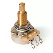 Erhältlich mit Spaltachse für fein gerändelte Poti-Knöpfe (24 Zähne) oder mit glatter Achse zum Befestigen von Knöpfen mit Madenschrauben. Die 500-kOhm-ohm-Version mit langer Achse eignet sich speziell für Les-Paul-Style Solidbody-Gitarren mit gewölbter Decke.