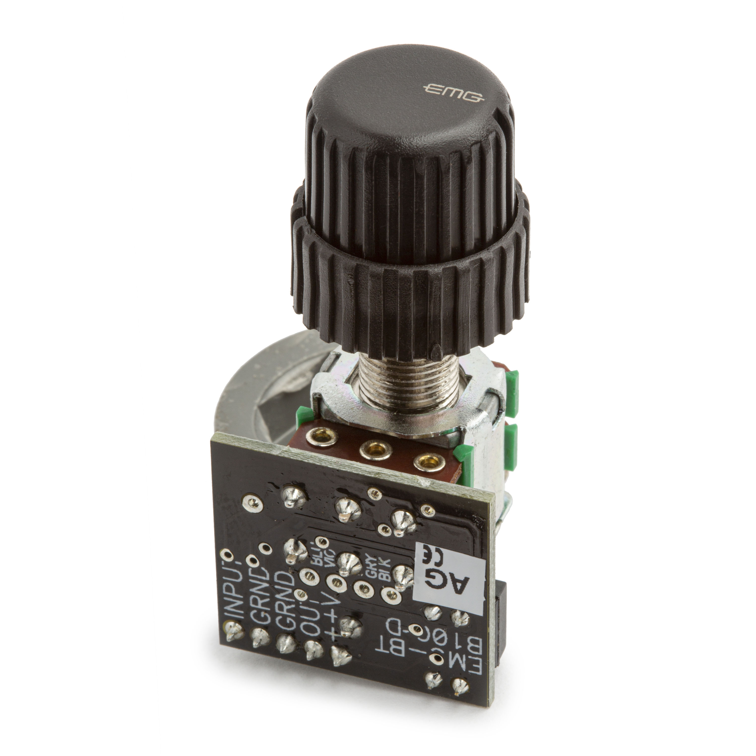 Das ABC Control ist für EMG Active Pickups ausgelegt. Es ermöglicht ein verlustfreies Gleichgewicht zwischen zwei Abholungen und verfügt über eine Mittelsperre für die mittlere Position. Wenn Sie passive EMG-HZ-Abholungen oder andere passive Abholungen verwenden, sollten Sie die B125 Active Balance Control verwenden, die gepufferte Eingänge für eine höhere Eingangsimpedanz aufweist. - BTC Control (B100) 2-Band-Equalizer für Bassgitarre. Der BTC verfügt über einpolige Filter zur Breitbandentzerrung. Oftmals werden die breiteren einpoligen Filter für Musikinstrumente bevorzugt, da sie weniger selektiv, am Ohr einfacher und „musikalischer“ klingen. Eine der Funktionen der BTC-Steuerung ist ein Dip-Switch mit 2 Positionen, der die Neigung des Hochfrequenzgangs steuert. Durch die Auswahl einer der vier Kombinationen kann der Hochfrequenzgang auf Ihre Wünsche zugeschnitten werden. Die BTC-Steuerung hat eine hohe Eingangsimpedanz und kann mit aktiven oder passiven Pickups verwendet werden. Die Bässe und Höhenregler sind auf einer konzentrischen Welle montiert und die Knöpfe sind im Lieferumfang enthalten.