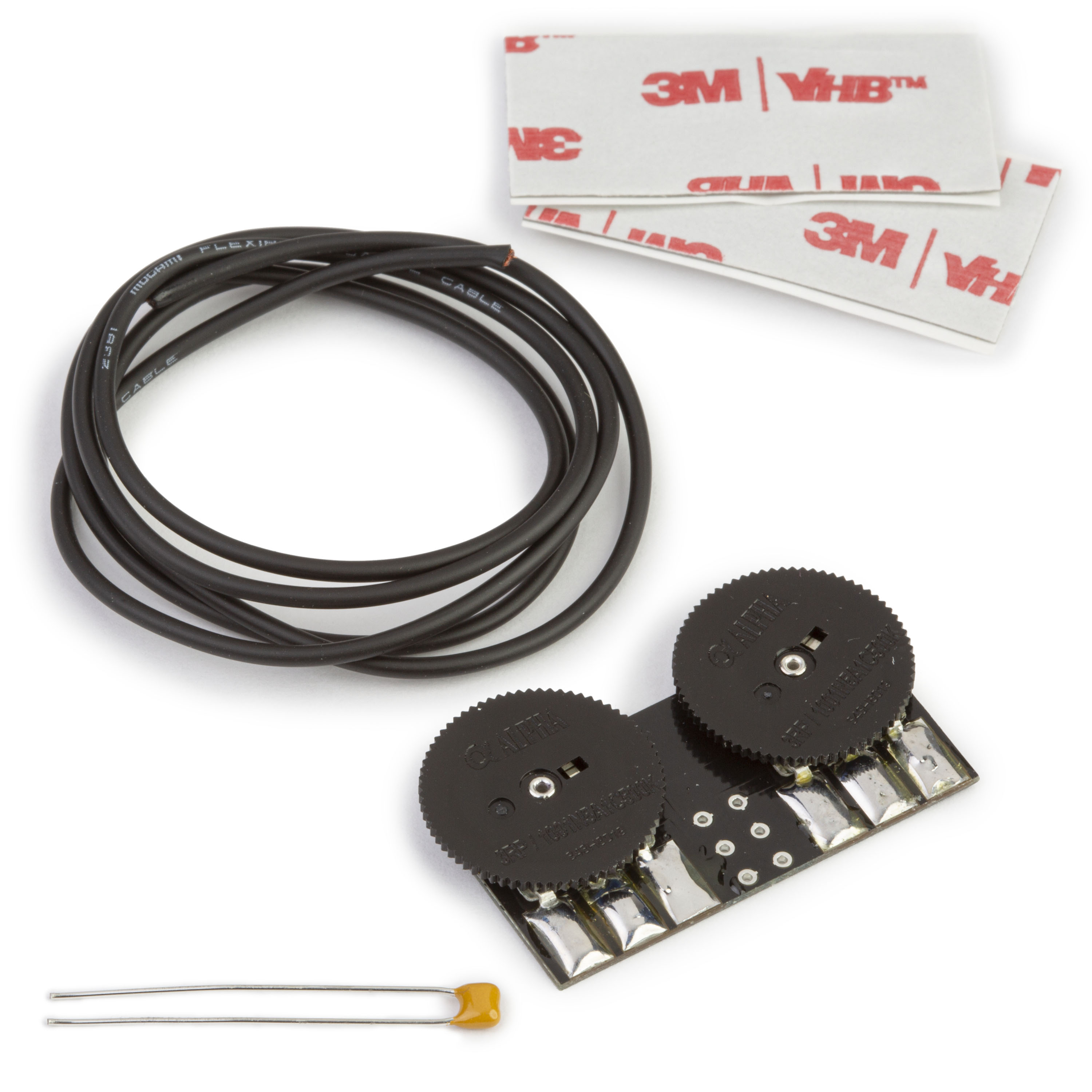 Die Daumenräder sind weniger als 3/16" dick und werden direkt an einer flachen Miniaturplatine montiert, die mit dem mitgelieferten Schaumstoffband leicht unter Ihrem Pickguard befestigt werden kann. Die Montagefläche beträgt ca.1-1/4" x 3/4" (31,75 mm x 19,05 mm).
