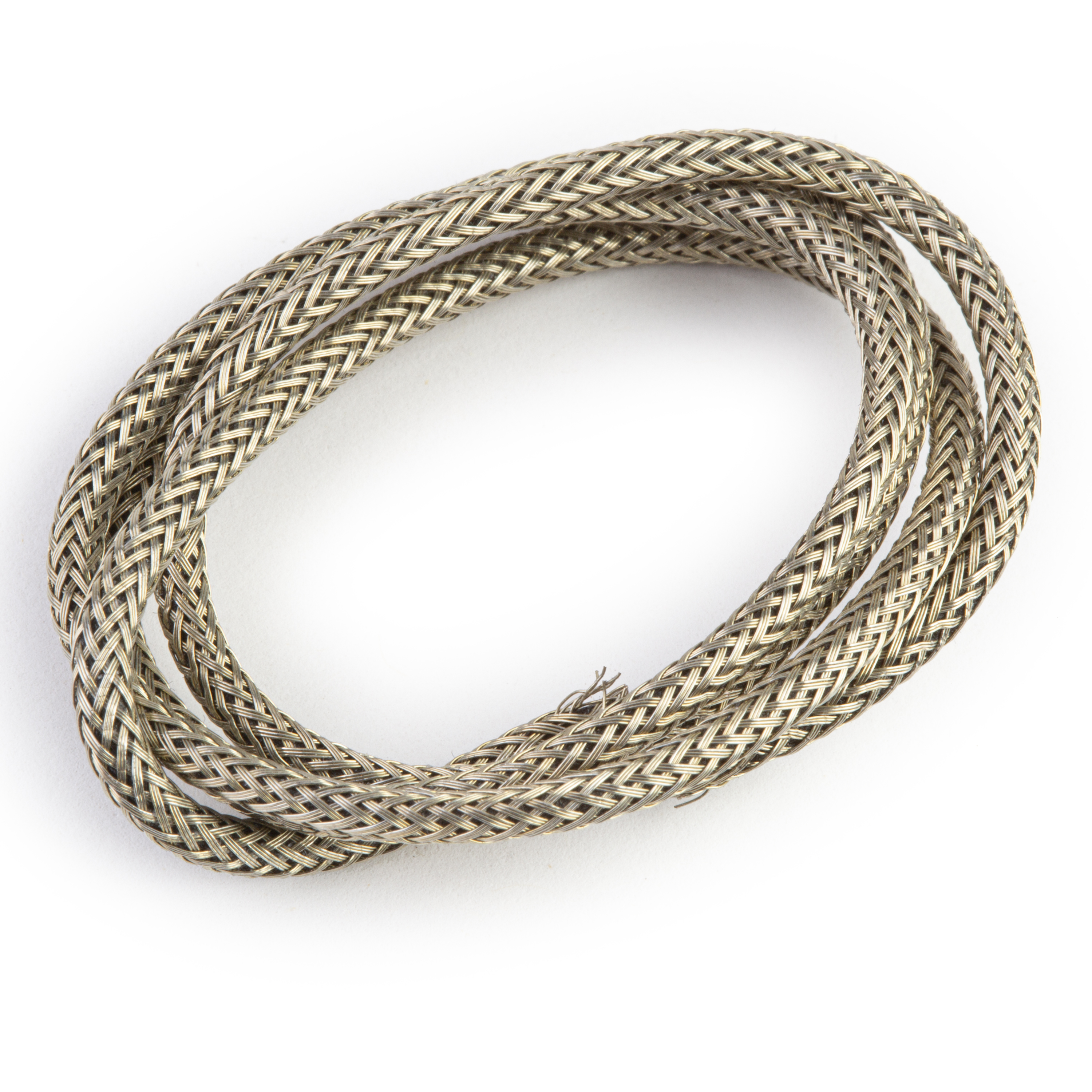 Hier ist der richtige Draht für Gibson und Gitarrenschaltungen im Vintage-Stil. Die Stoffisolierung drückt einfach zurück, um den Mittelleiterdraht freizulegen.