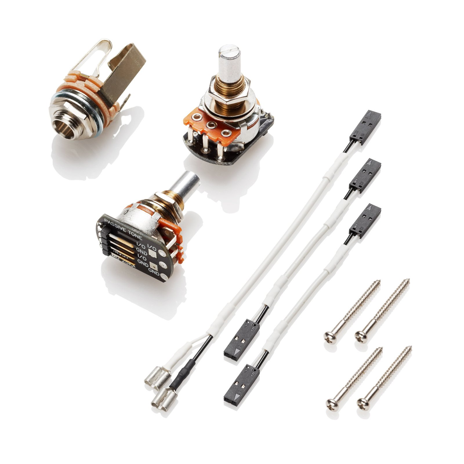 Das komplett lötfreie P-Set verwendet Alnico V-Ständerstücke und kundenspezifische Wundspulen für genau die richtige Menge an Stanze und Körnung.