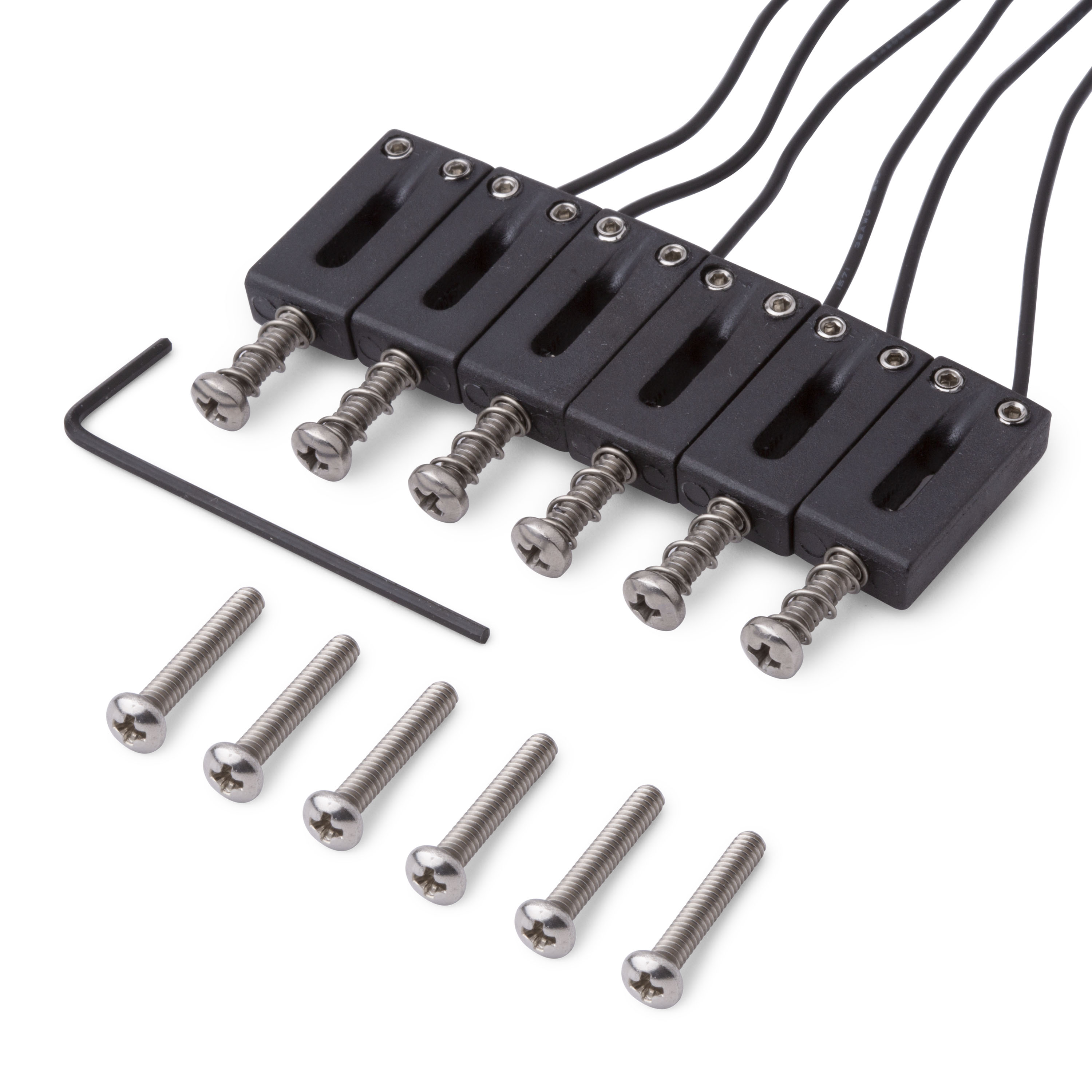 Diese Polymersättel sind so kalibriert, dass sie eine Leistung liefern, die mit Ihren magnetischen Pickups übereinstimmt, und ihre Klangkompression entspricht dem Dynamikbereich einer akustischen Gitarre. Schrauben und Federn sind enthalten.