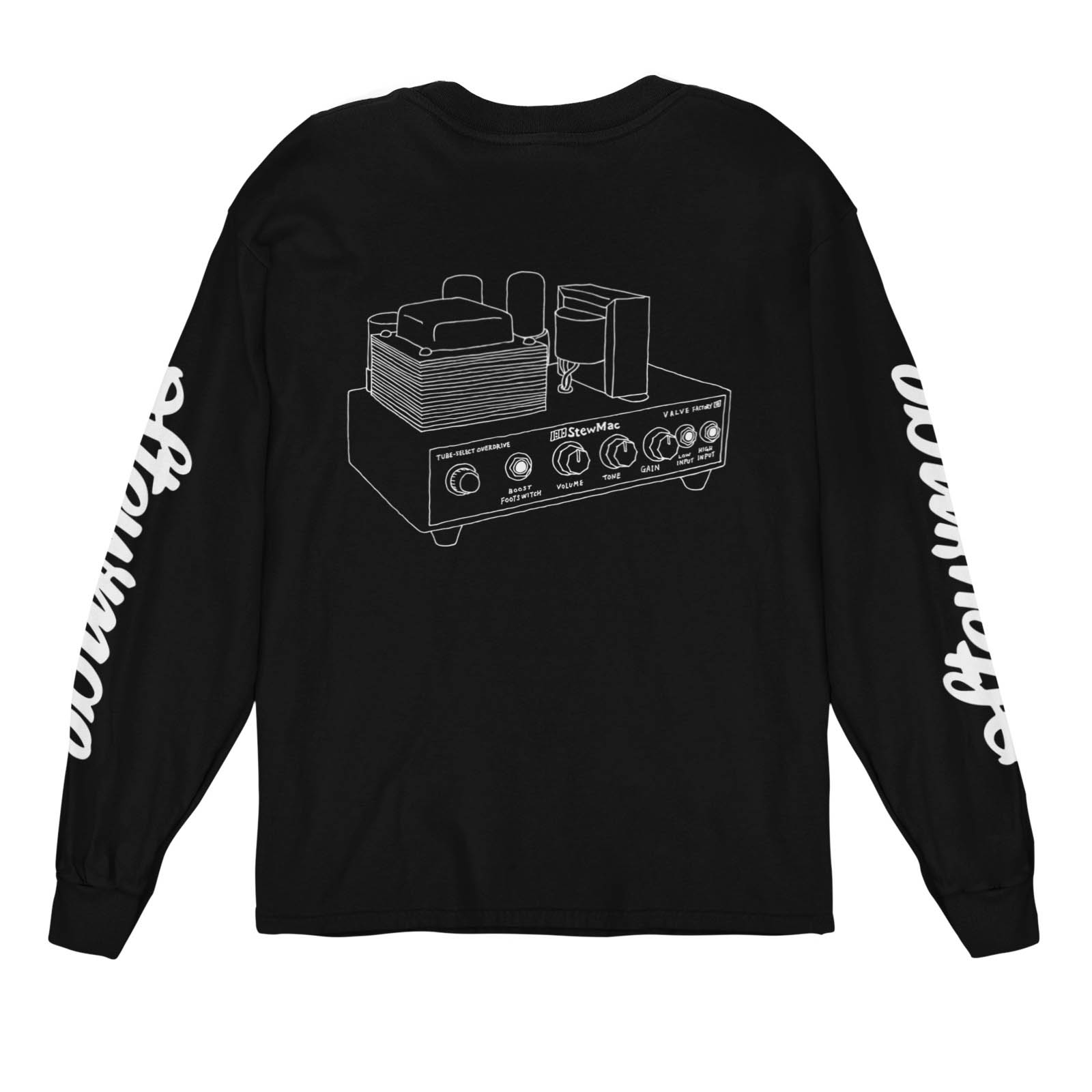 Unser langärmliges StewMac by Shogo Ogoshi T-Shirt ist mit unserem Retro-inspirierten StewMac Amp und dem Skript-Logo verziert.