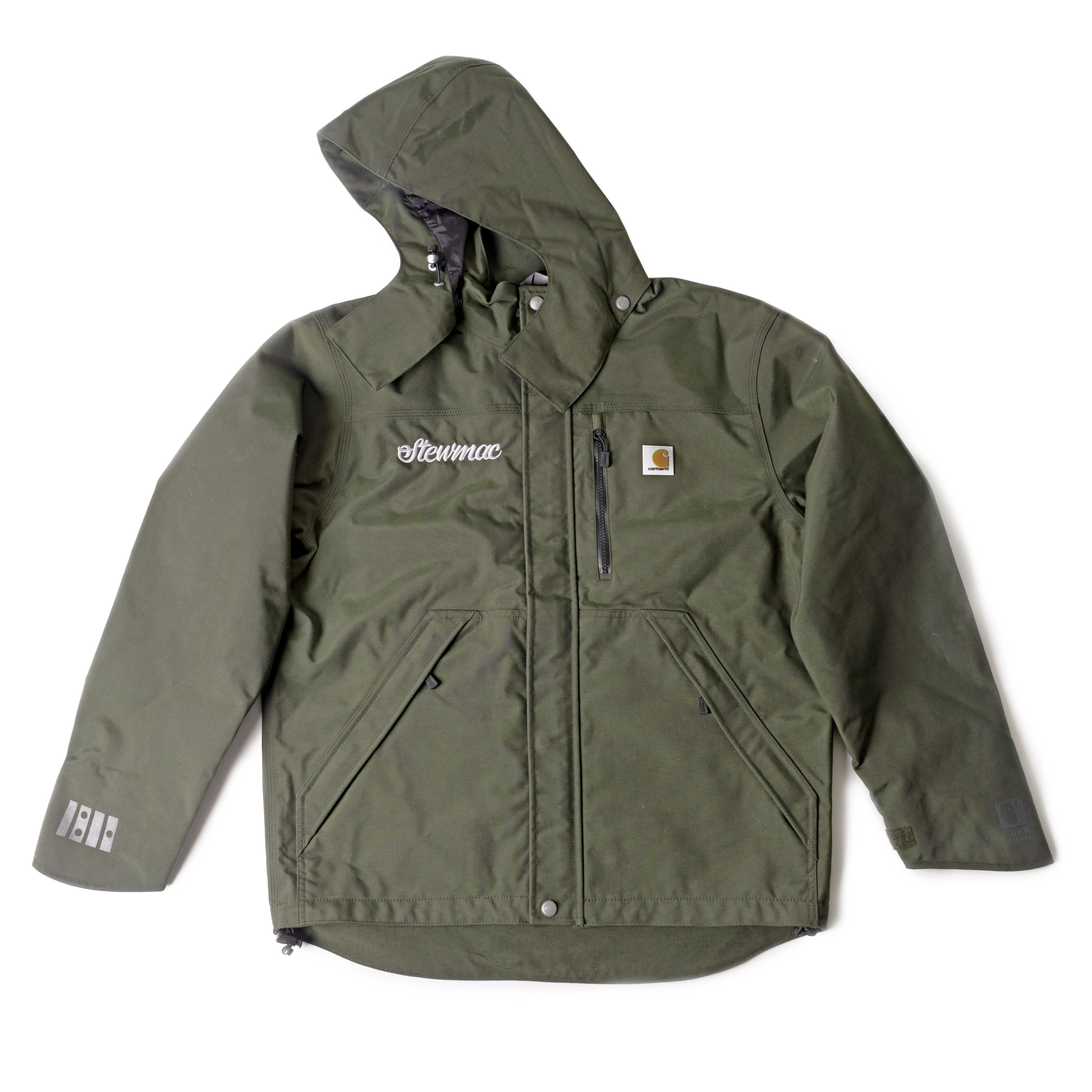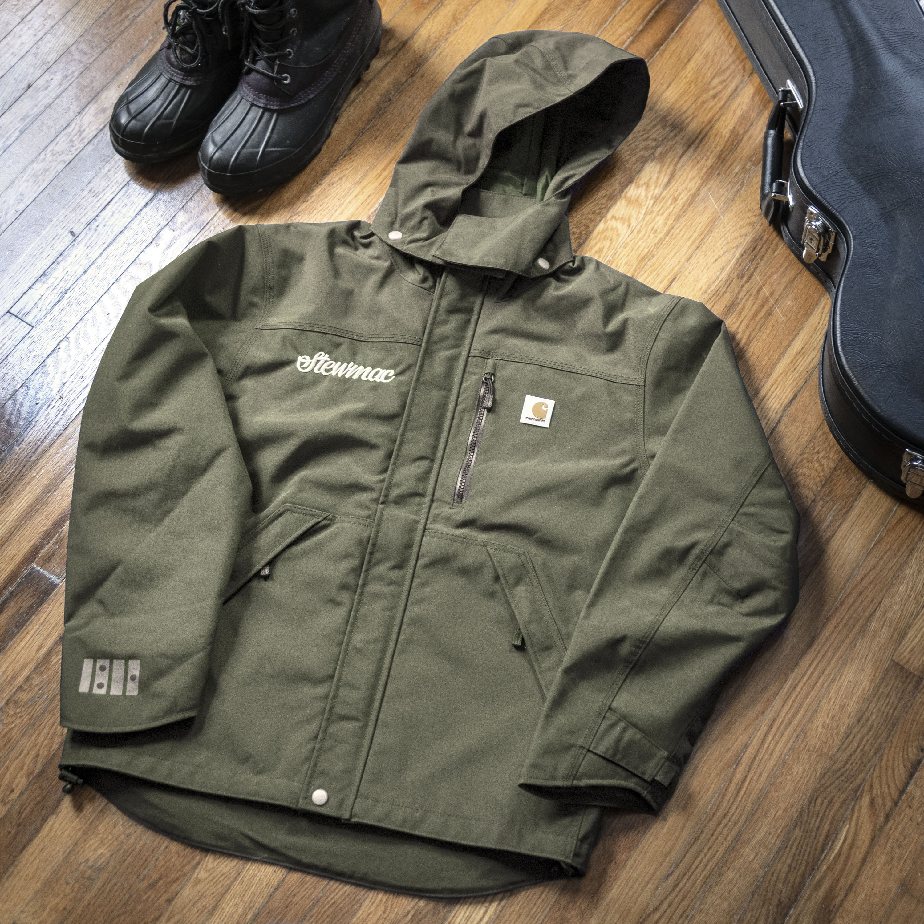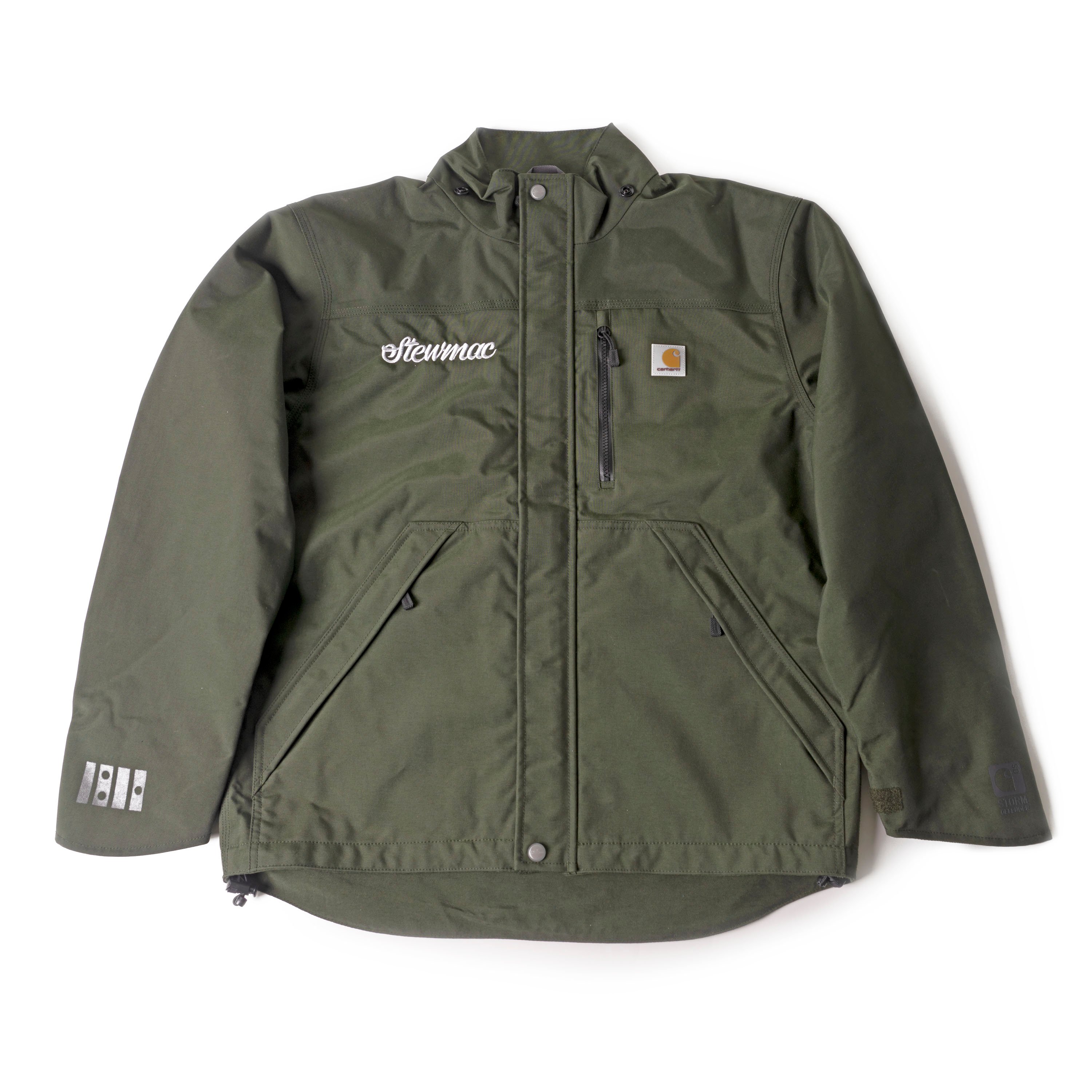 Diese Jacke mit durchgehendem Reißverschluss wurde speziell für StewMac von Carhartt entwickelt und ist perfekt für nasses Wetter. Die Kapuze mit Druckknopf macht sie bereit für alles, was du unterwegs oder auf dem Festival erleben wirst. Es verfügt über viele Fächer für dein Telefon, deine Auswahl, Tickets und mehr.