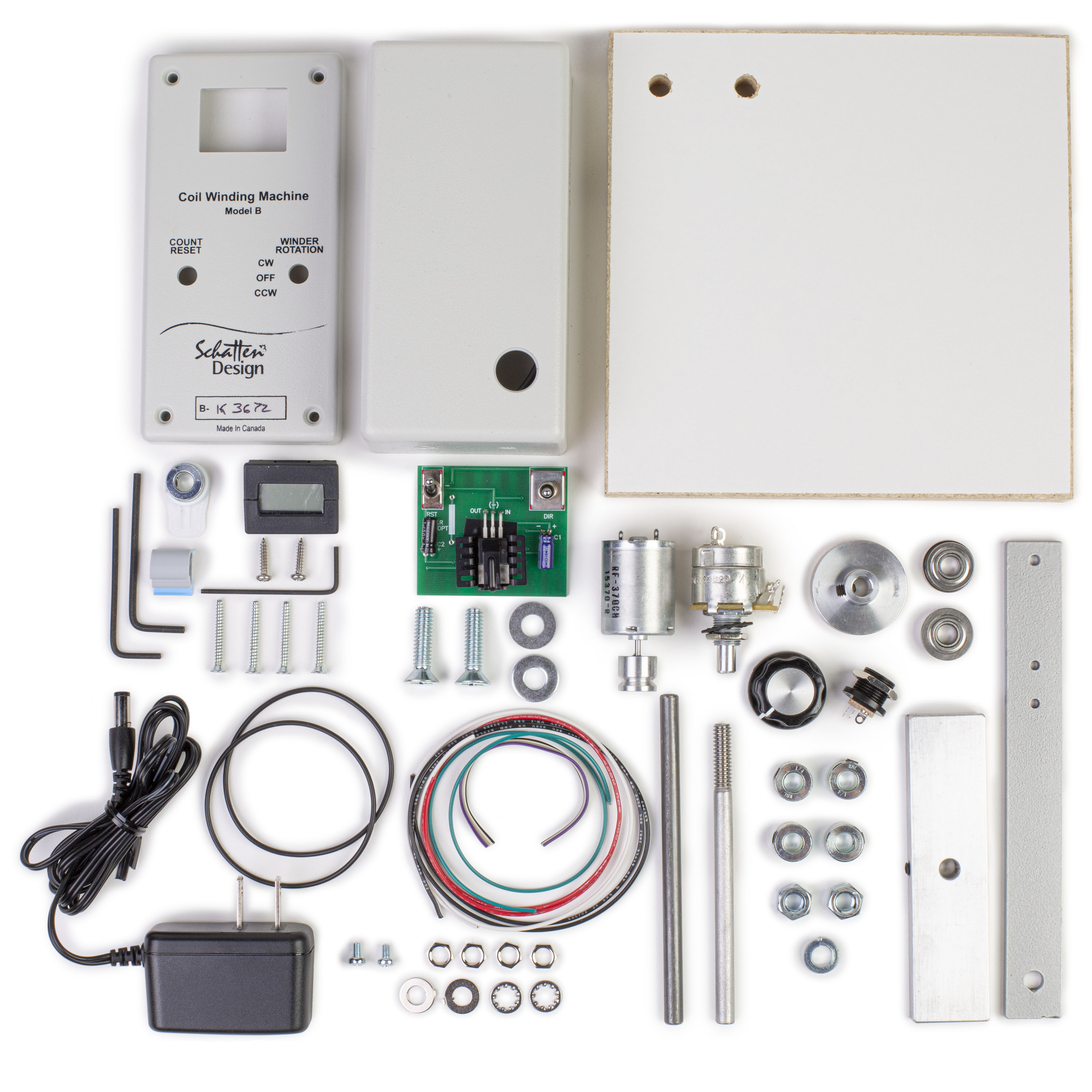 Der Satz enthält alles, was für die Montage einer voll funktionsfähigen Wickelmaschine des Schatten-Modells B erforderlich ist. Die Teile sind vorgebohrt, und die Montage besteht hauptsächlich aus Lötarbeiten und der Installation von Teilen.