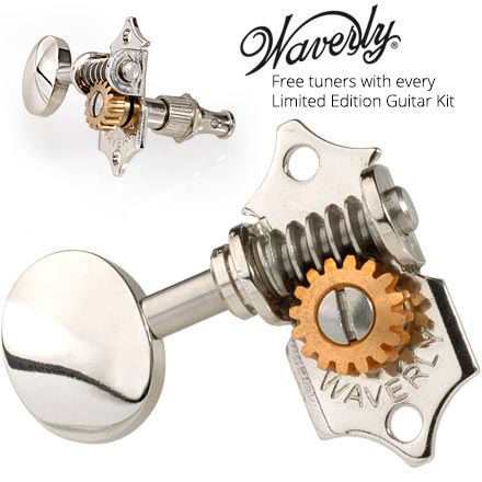 Wenn Sie eines unserer Limited Edition WOODSTAX-Kits kaufen, erhalten Sie auch ein Set von FREE Waverly Tuning-Maschinen!