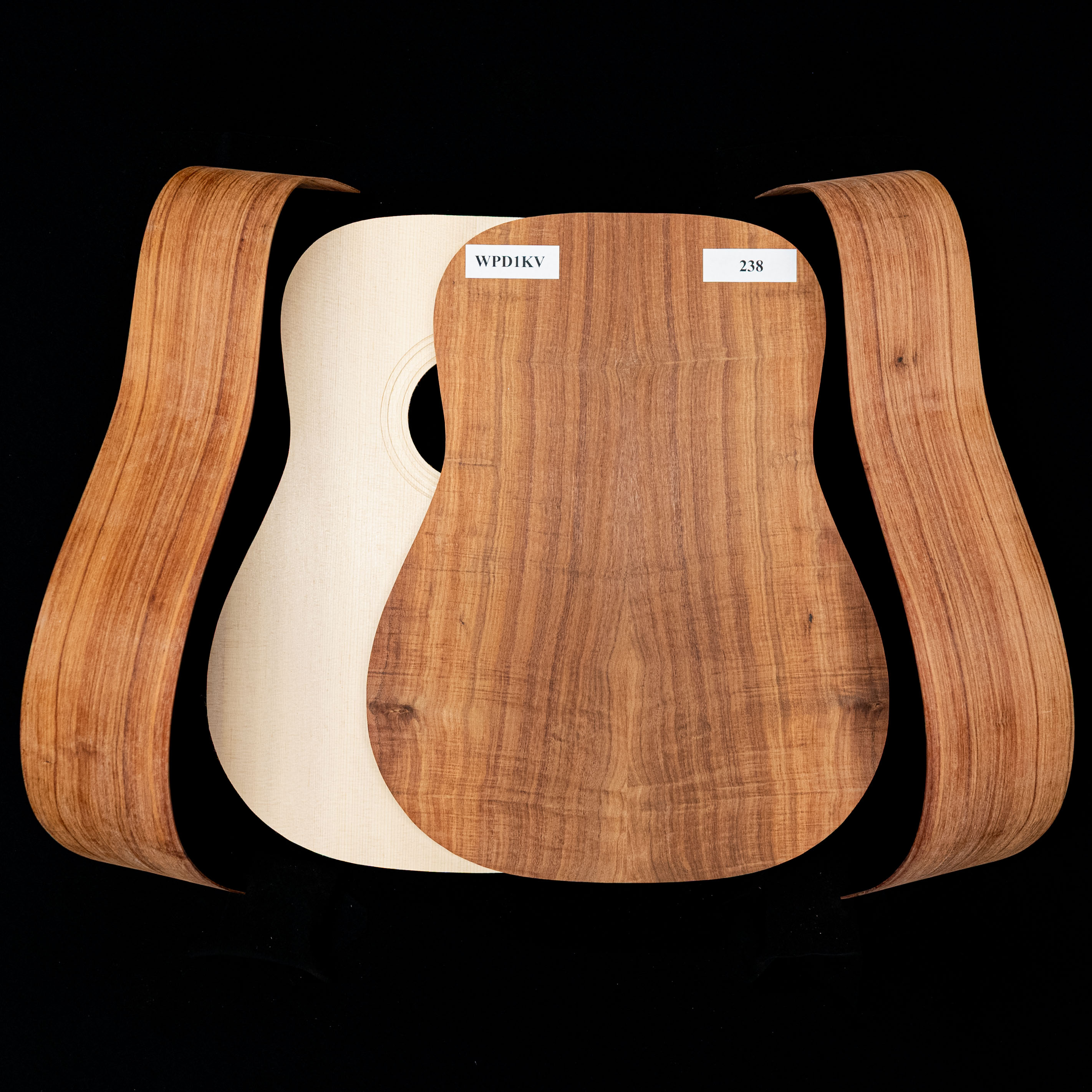 Wir haben jedes Set einzeln fotografiert – was Sie im ersten Bild sehen, ist das tatsächliche Holz, das Sie erhalten. Vergrößere und sieh dir die einzigartige Figur, das Getreide und jedes Detail von Rücken, Seiten und Oberteil deines Outfits an und mach dich bereit, deine Traumgitarre zu bauen.