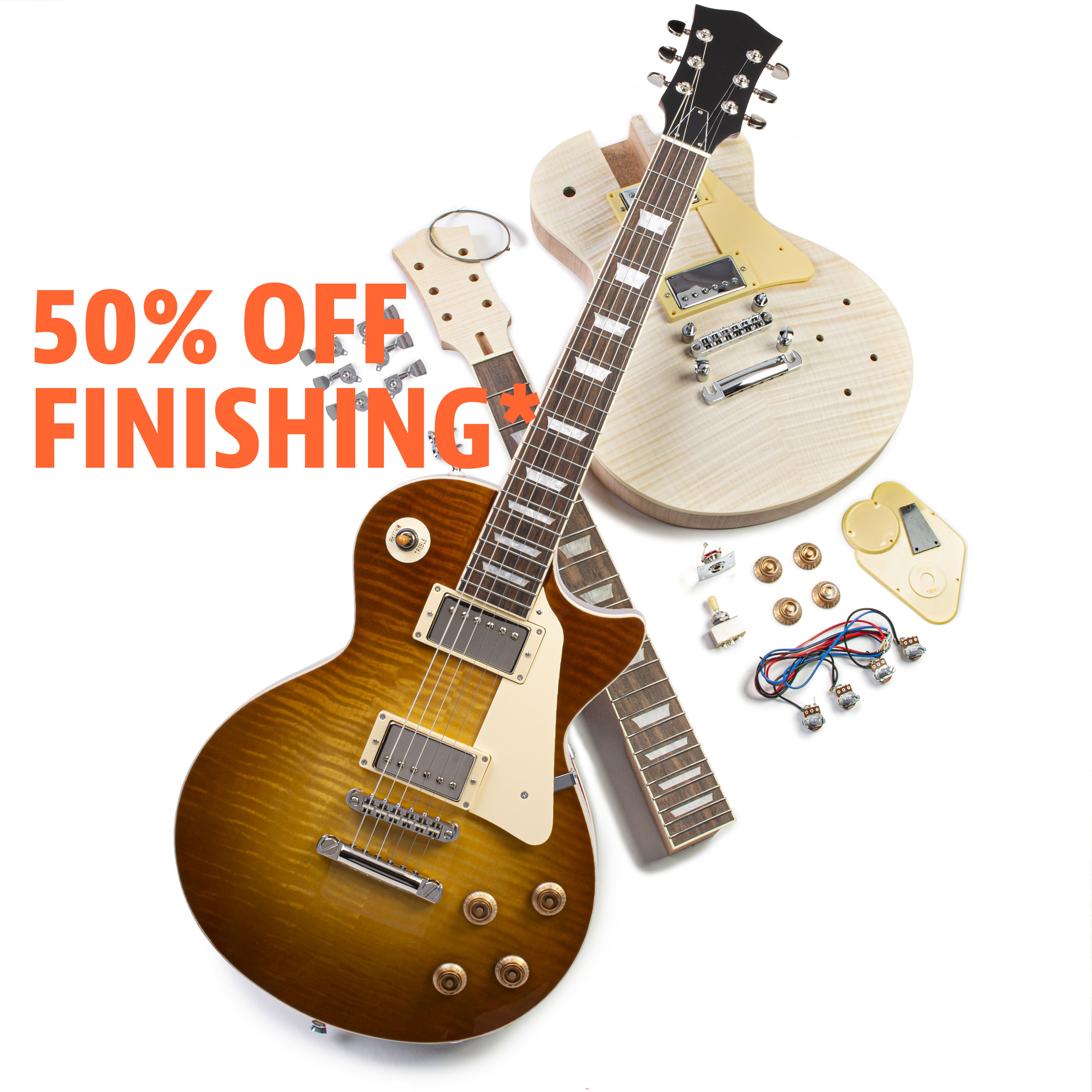 These kits are ready for you to open the box and start your build. Like the S and T-style kits, we've made it easy for anyone to make a great guitar on their first try.