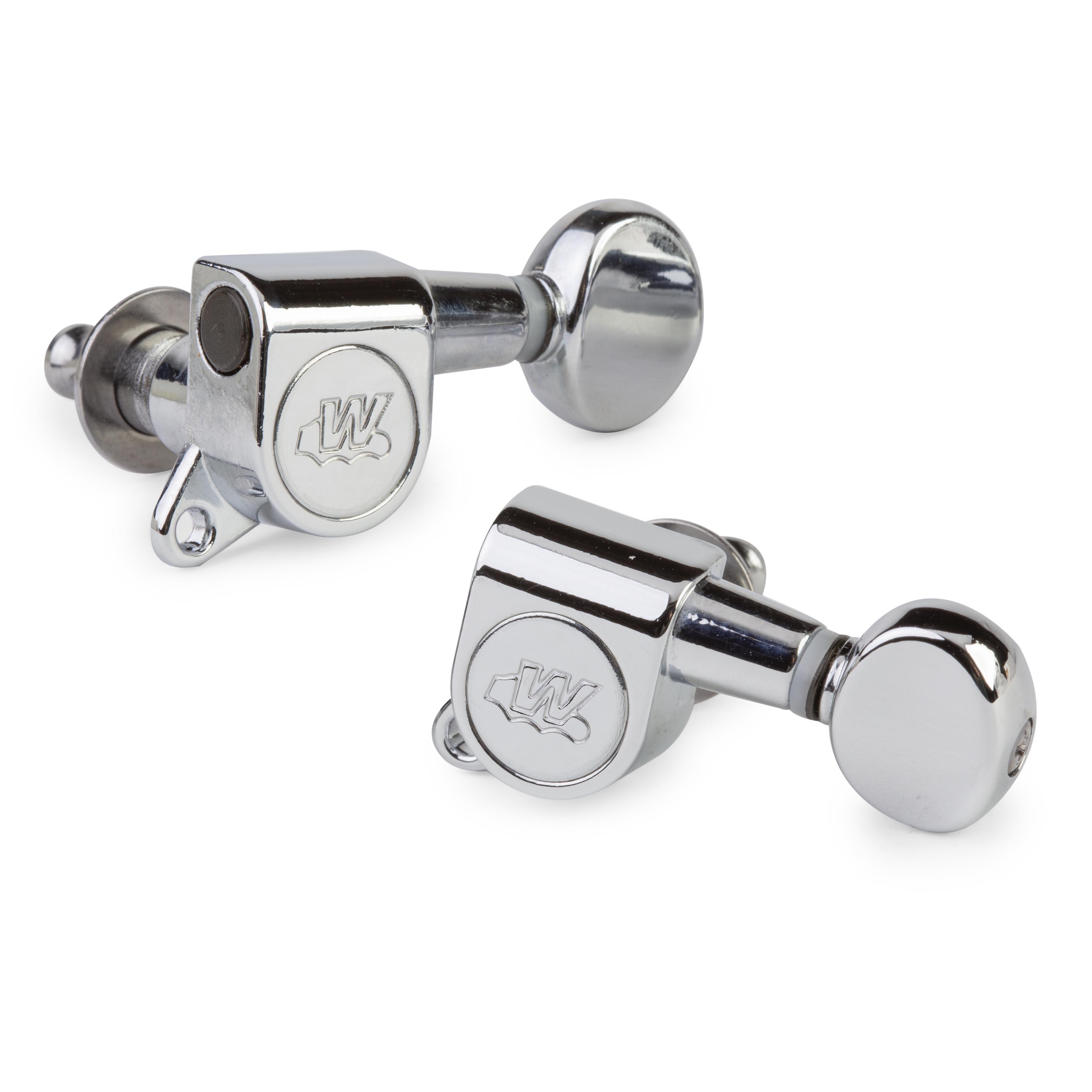 Die Hardware-Upgrades sind der Ort, an dem dieses Kit wirklich glänzt. Die Brücke ist Wilkinsons Interpretation der ursprünglichen Telebrücke mit traditionellen Messingsätteln. Die Sättel sind gestaffelt, sodass deine Gitarre tatsächlich im Tune spielt (versuchen Sie das mit jedem Original-Tele!). Wie die Originale ist die Brücke Stahl, der grundlegend verändert, wie die Pickups und die gesamte Gitarre klingen. Die Graph Tech-Mutter und die versiegelten Druckguss-Tuner halten die Gitarre auch bei tiefen Blues-Bögen im Gange.