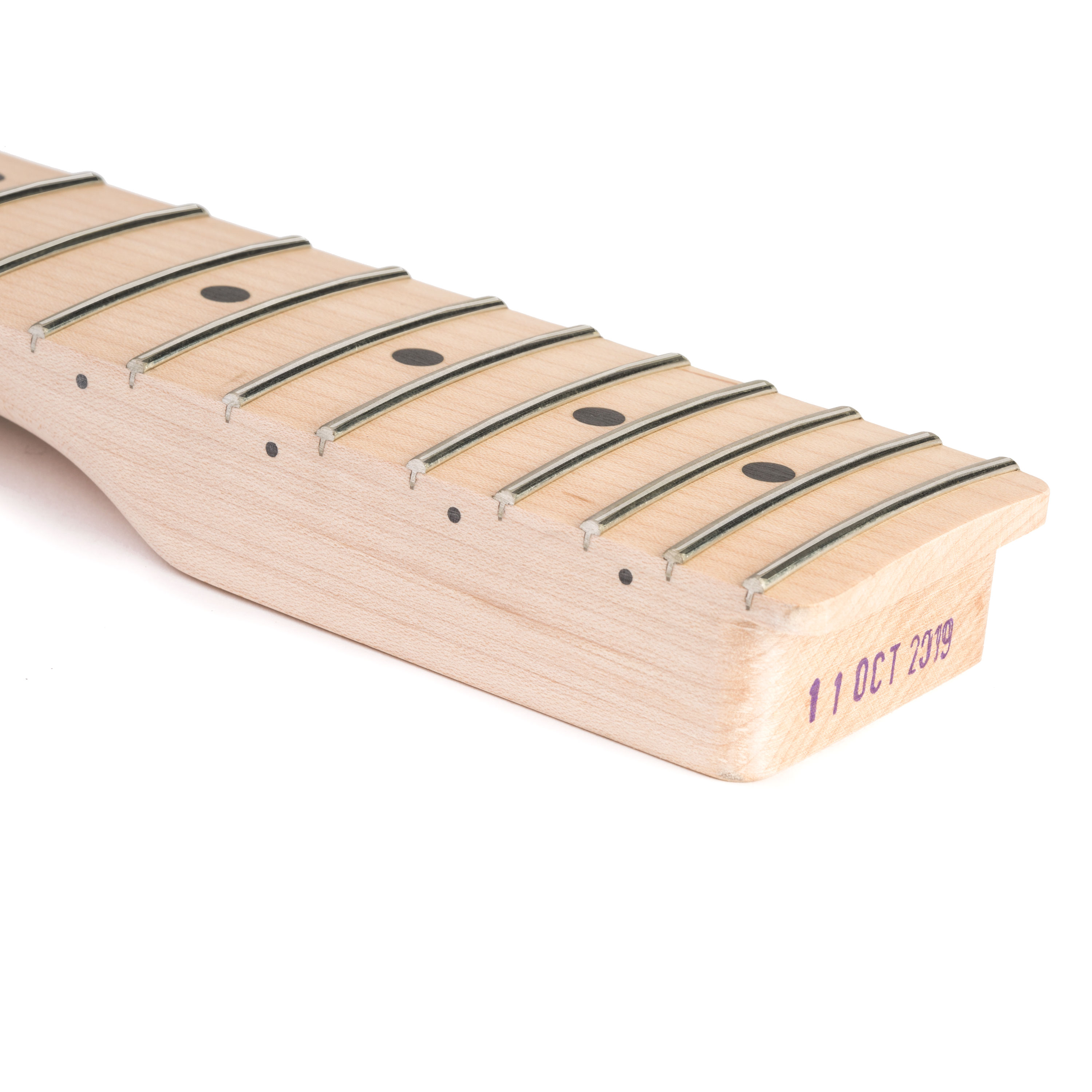 Der Ahornhals fühlt sich sofort glatt an und passt eng in die Tasche. Es ist vorgefriert, eingelegt und bereit für die Feinabstimmung auf deine perfekte Form. Der Zapfenkopf hat eine sehr vertraute Form – er ist bereit für Sie, die genauen Kurven und Konturen an jedes Vintage-Modell anzupassen, von dem Sie sich inspiriert fühlen.