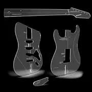 Enthält zwei große Schablonen mit Körperform, Halstasche, Steuerhohlräume, Verdrahtungskanal, herkömmliche drei Single-Coil-Aufnahmehohlräume, Buchse und Brückenposition.