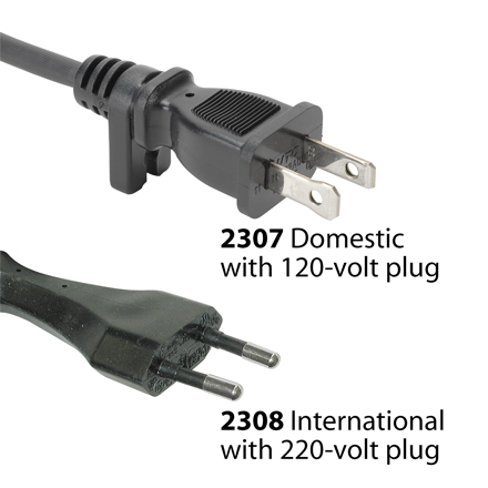 #2308 Fret Pulling Set, International ist ein 220-Volt-AC-Elektrogerät, 50Hz. Er verfügt über einen internationalen Stecker Typ C (Europlug) mit zwei runden, nicht geerdeten Stiften.