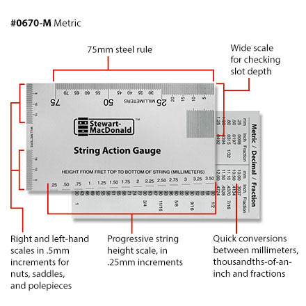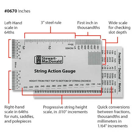 Messen Sie Ihre Stranghöhe und das Sitzen des Brückensattels mit Präzision – ein unverzichtbares Element, um Ihr Spielgefühl zu bestimmen.