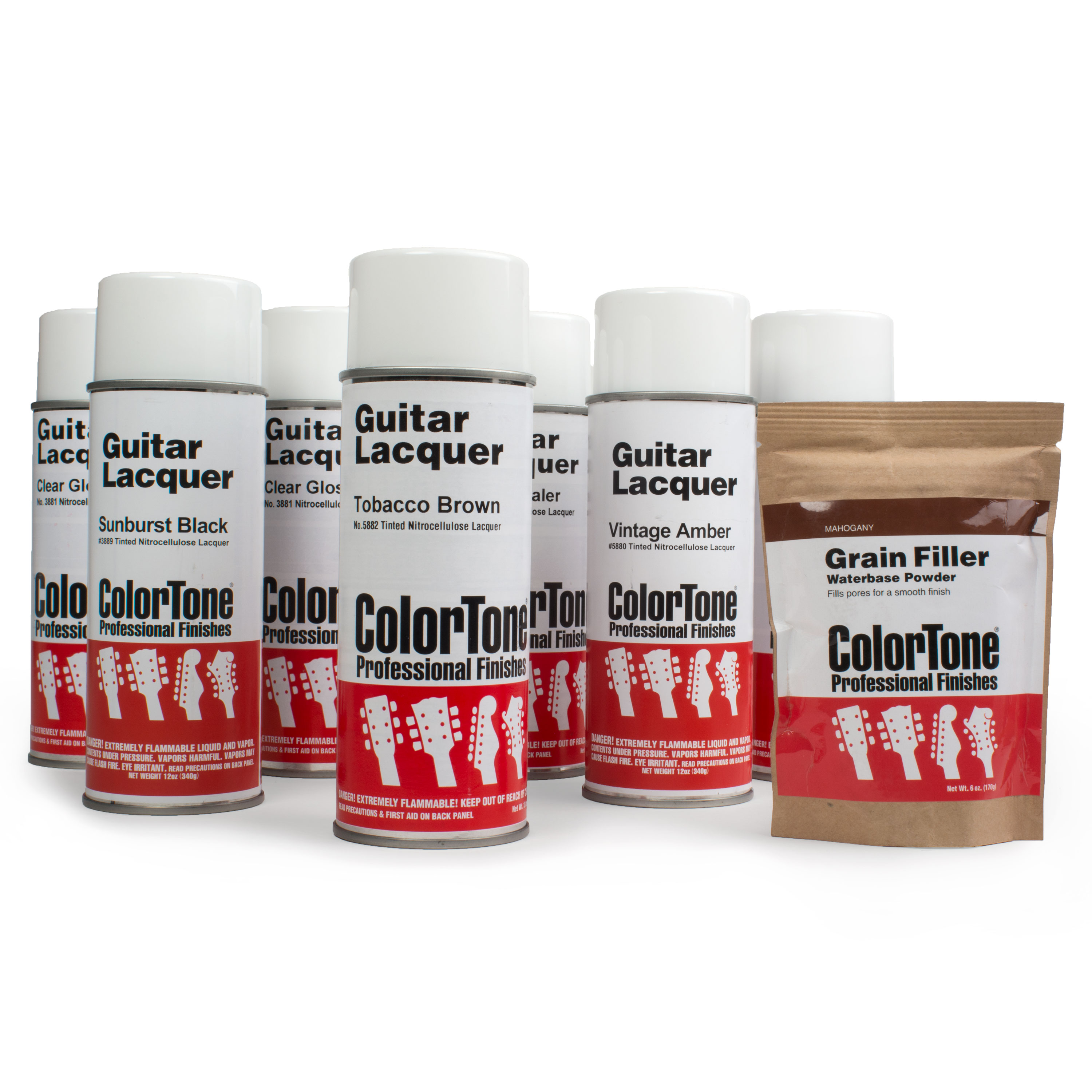Alles, was Sie brauchen, um ein Instrument von Anfang bis Ende vollständig fertigzustellen. Alles ist da – vom Füllen der Poren bis zum Spritzen des endgültigen Klarlacks. Es war noch nie so einfach, ein wirklich makelloses Finish mit einfach zu verwendenden Aerosolen in professioneller Qualität zu erhalten. Wir haben das richtige Material ausgewählt, um den gewünschten Look zu erhalten, ohne zu erraten, welche Füllung, Farbe oder wie viel Lack du brauchst. Alles ist da und bereit für das perfekte Finish. Wir haben Anweisungen für jedes Set geschrieben und unser Technikteam steht Ihnen bei Fragen gerne zur Verfügung.
