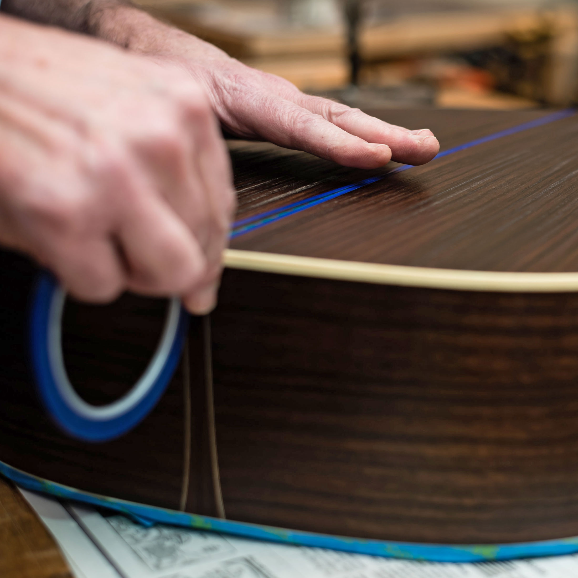 Er ist extrem flexibel und passt sich mühelos an enge Ecken an, ohne Knicke oder Knitterfalten. Sie ist nicht nur ideal für Kurven, sondern bleibt auch gerade. Es ist das perfekte Klebeband zum Abdecken von Rosetten im Soundhole. Und es ist auch fantastisch für Pintriping!