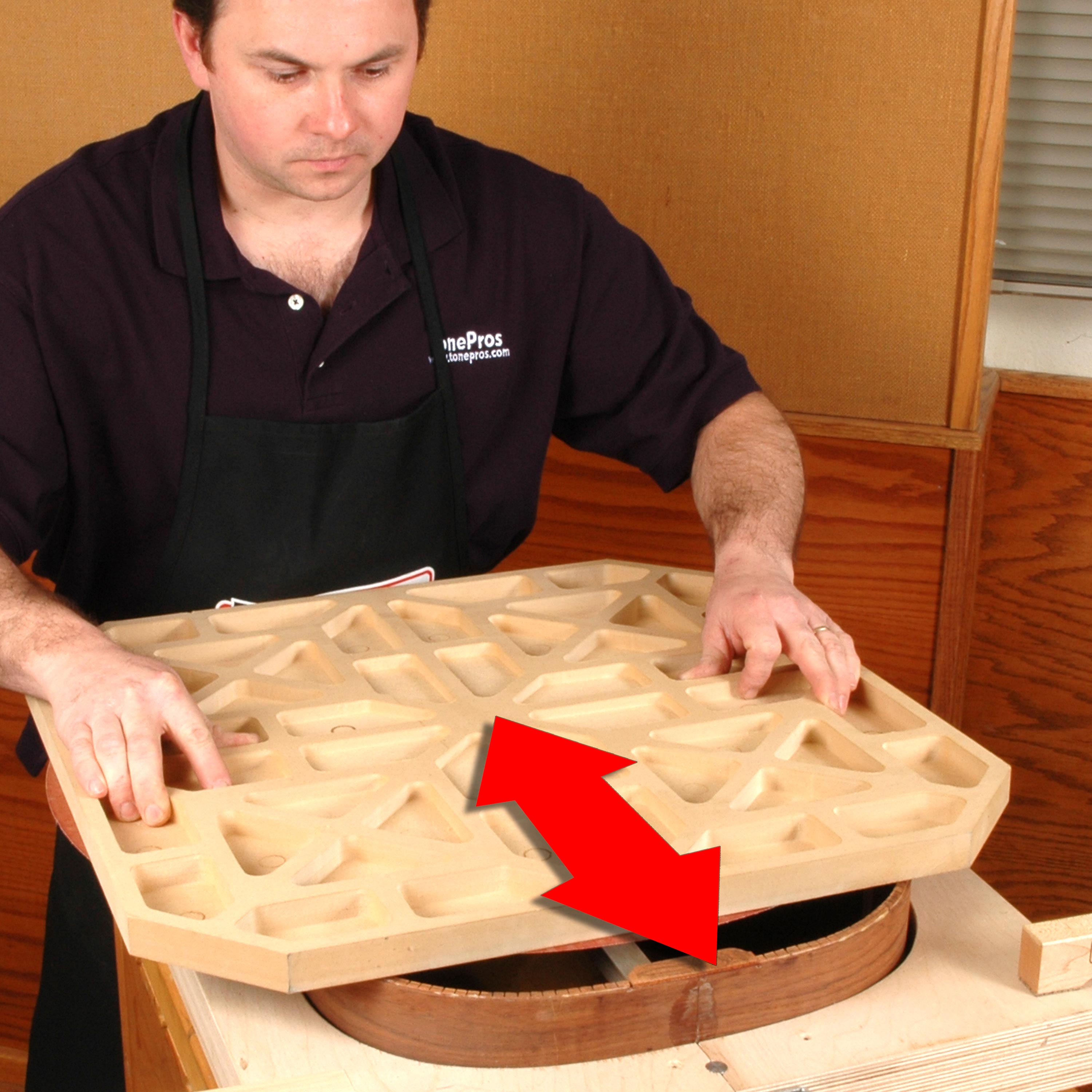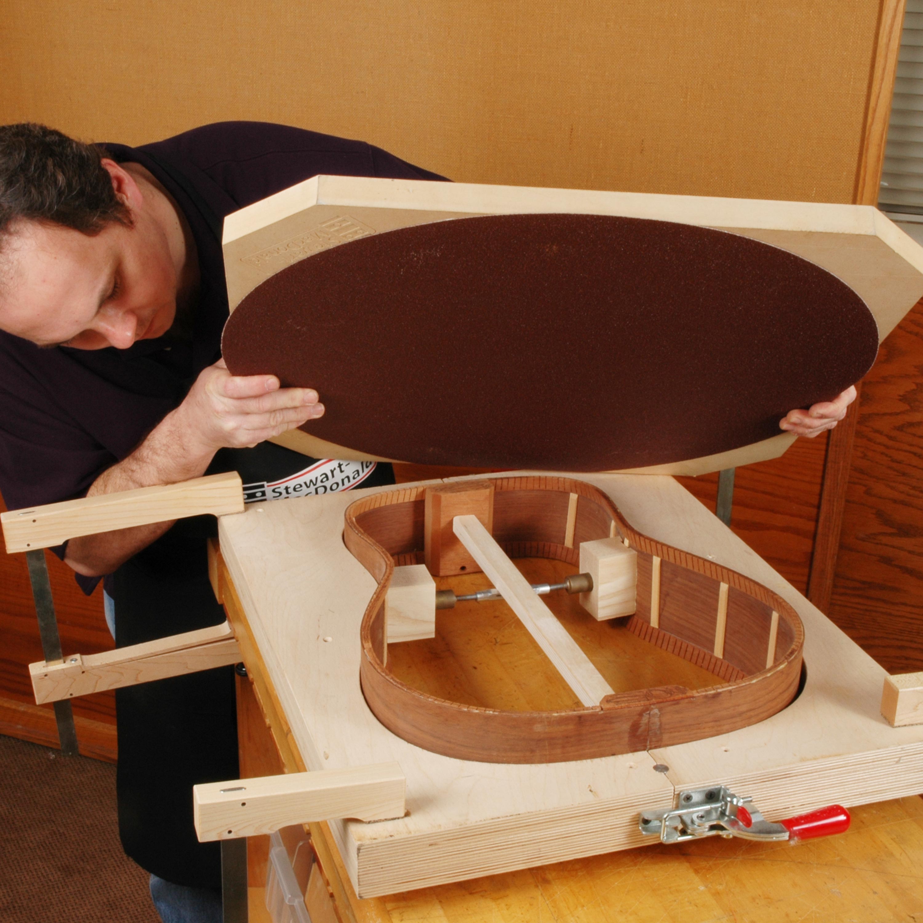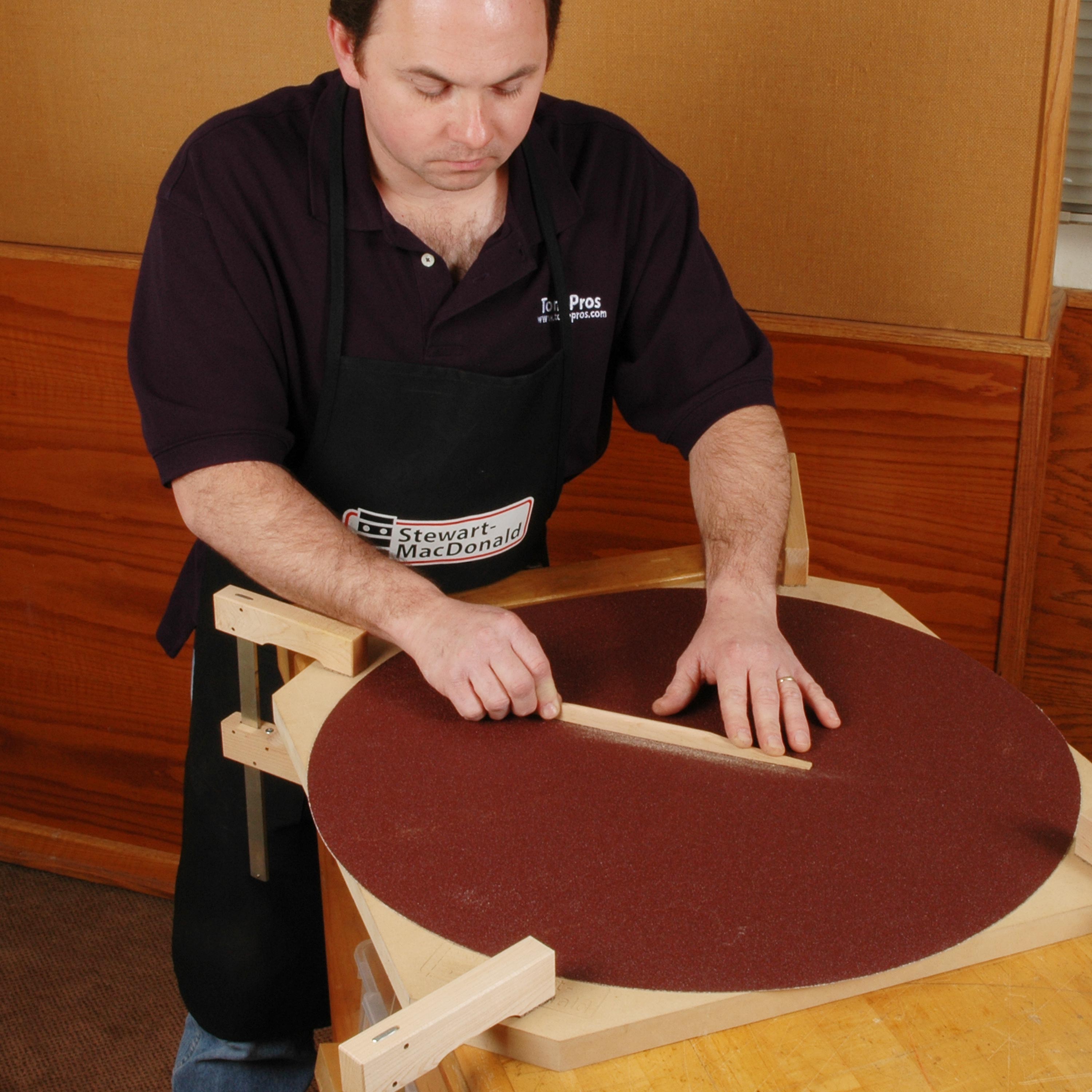 Schmirgeln Sie die perfekte Krümmung in eine akustische Rückenstütze: Kleben Sie eine Schleifscheibe an eine Radius Schale das zu Ihrem Gerät passt.