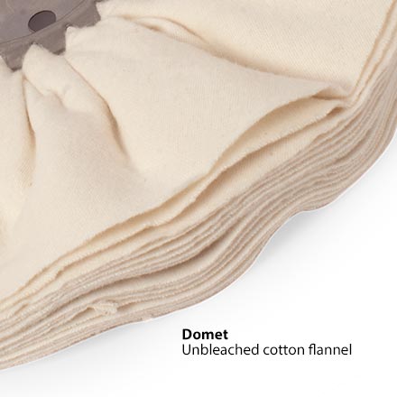 Domet-Baumwolle ist die weichste auf dem Markt. Verwenden Sie Domet Flanell mit feiner Verbindung, um einen besonders hohen Glanz zu erhalten. Bei einer vielseitigen Puffereinrichtung werden auf der einen Seite Kantonsräder (mittlere Verbindung) und auf der anderen Seite Domet (feine Verbindung) verwendet.
