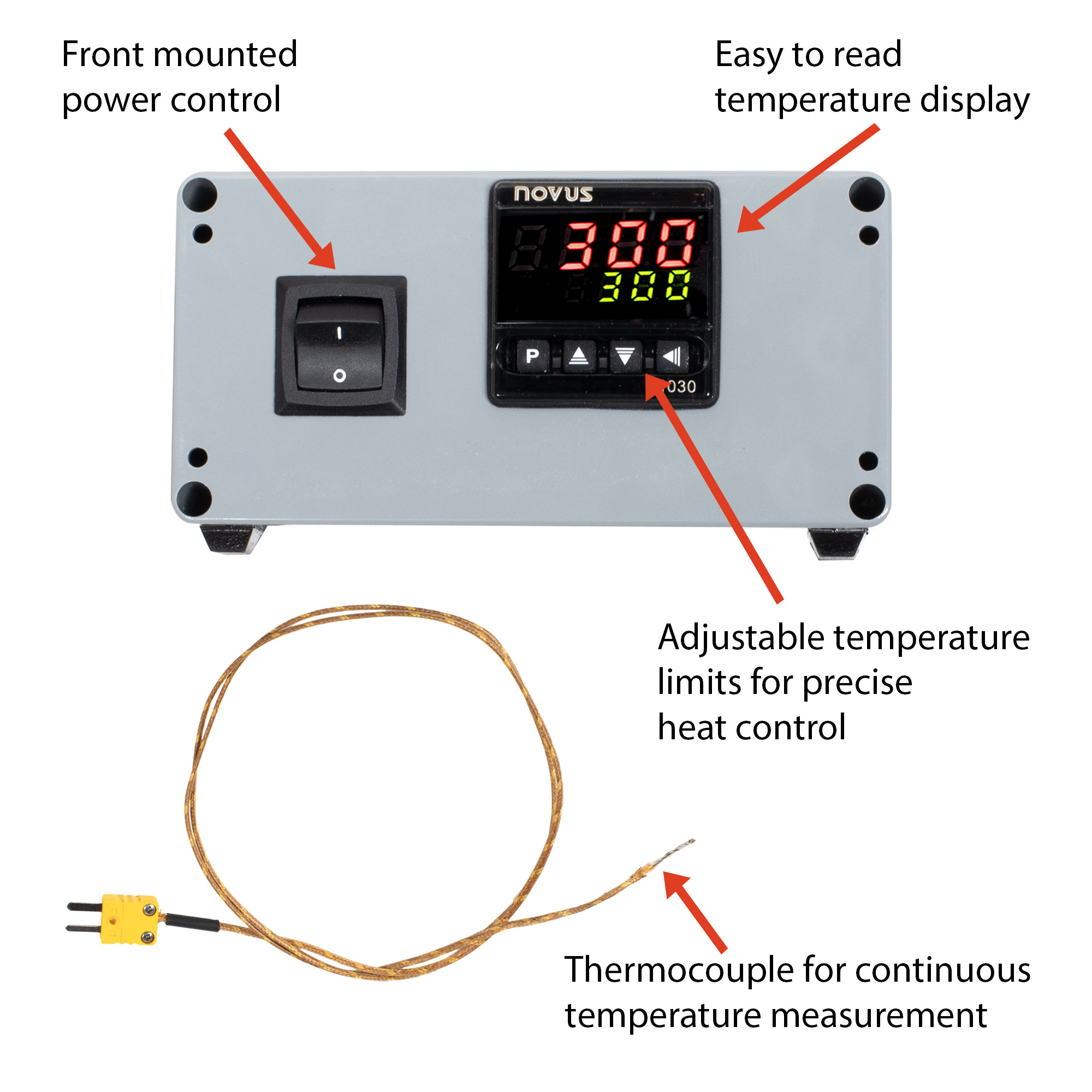 Präzise Temperaturregelung: Unser individueller Temperaturregler und unsere Heizdecke bieten eine präzise Temperaturgenauigkeit. Sie erhalten eine Echtzeitüberwachung der Temperatur Ihrer Seite und der Decke – Sie wissen genau, wann Sie Ihre Biegung beginnen und beenden müssen, um perfekte, keine Überraschungen zu erzielen. Das ist so viel besser als die alte Fleischthermometermethode!