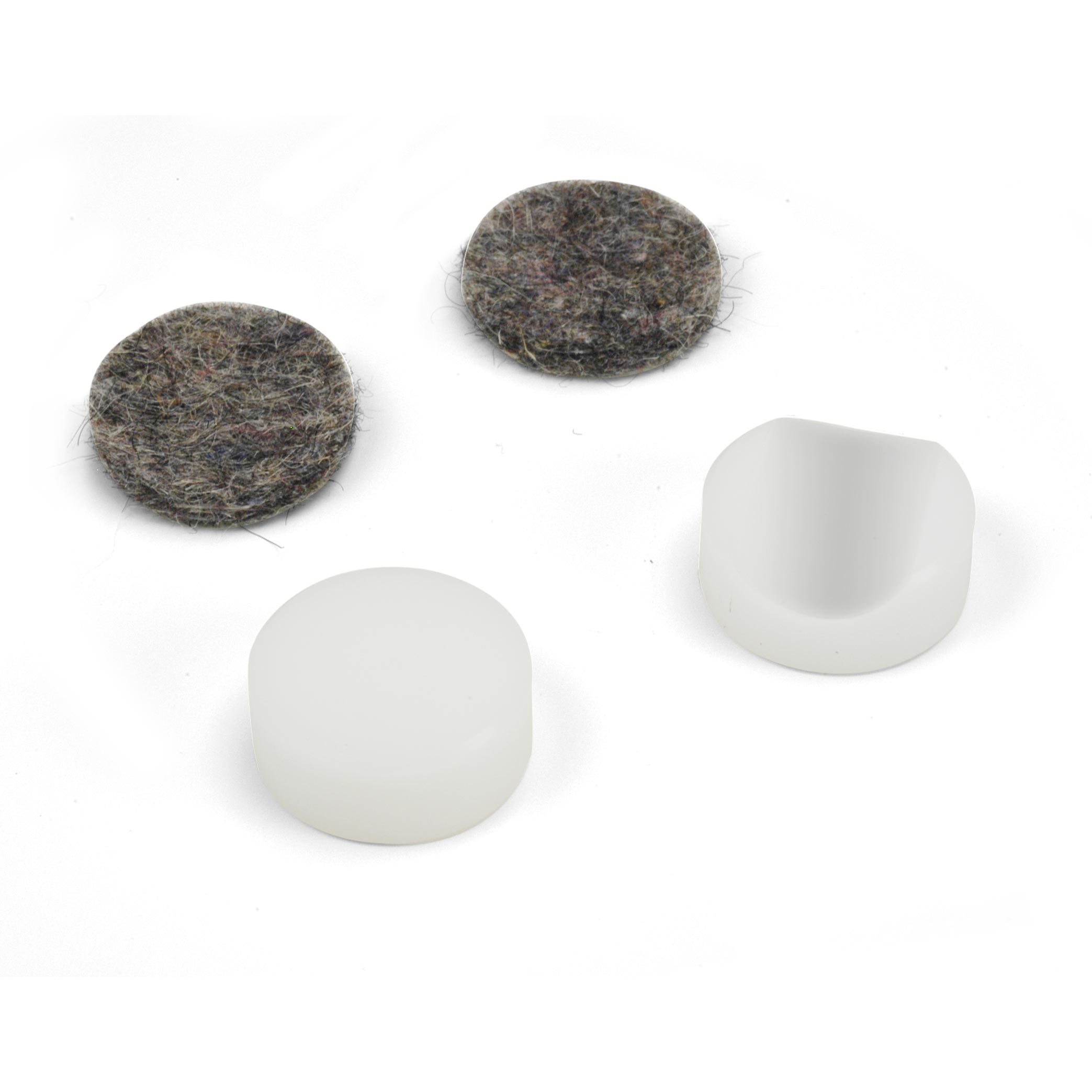 Jeder 3/8" x 7/8" Durchmesser Kul verfügt über eine dicke Filzscheibe, die aufgeklebt werden kann, um Holzbeulen vorzubeugen. Wir empfehlen, den leicht erhältlichen durchsichtigen Shoe Goo® Klebstoff zum Anbringen des Filzes an diesen Kesseln zu verwenden.