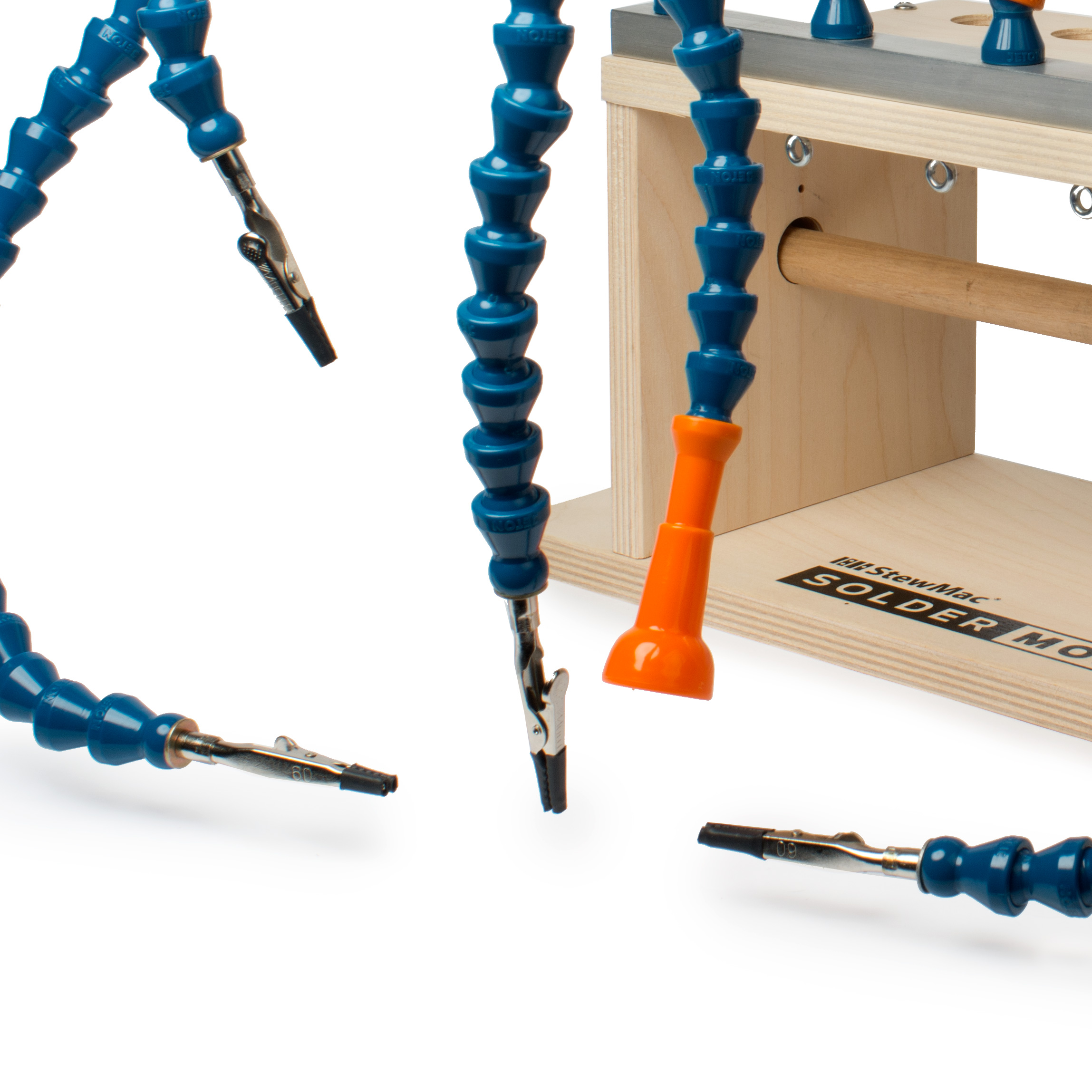 Wir haben das Monster für unseren eigenen Gebrauch entwickelt und unsere vorverdrahteten Golden Age Pickguards und Kabelbäume handgelötet. Wir mussten große und kleine Gegenstände in jedem Winkel halten, ohne komplizierte Anpassungen vornehmen zu müssen. Die Oktopusarme funktionieren super!