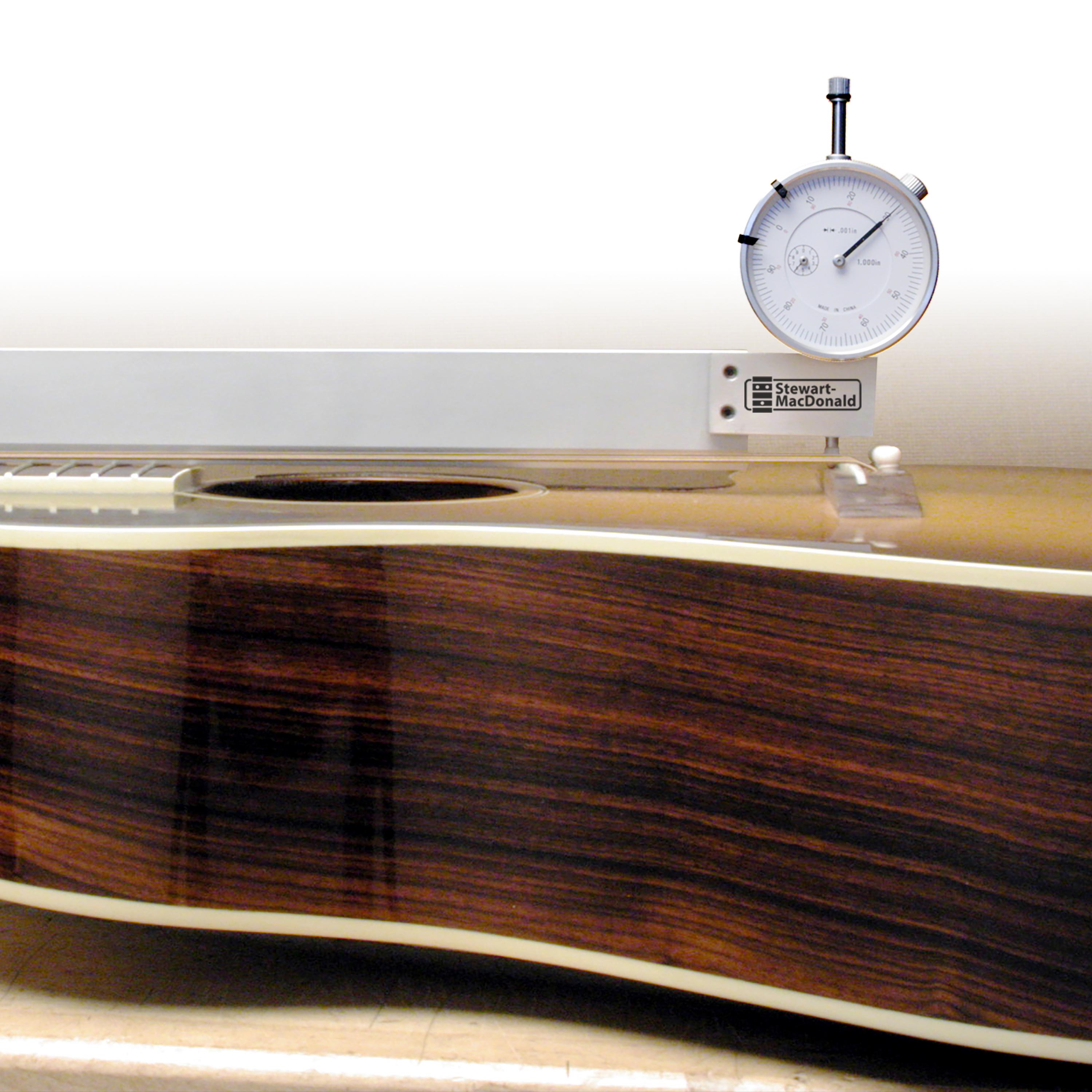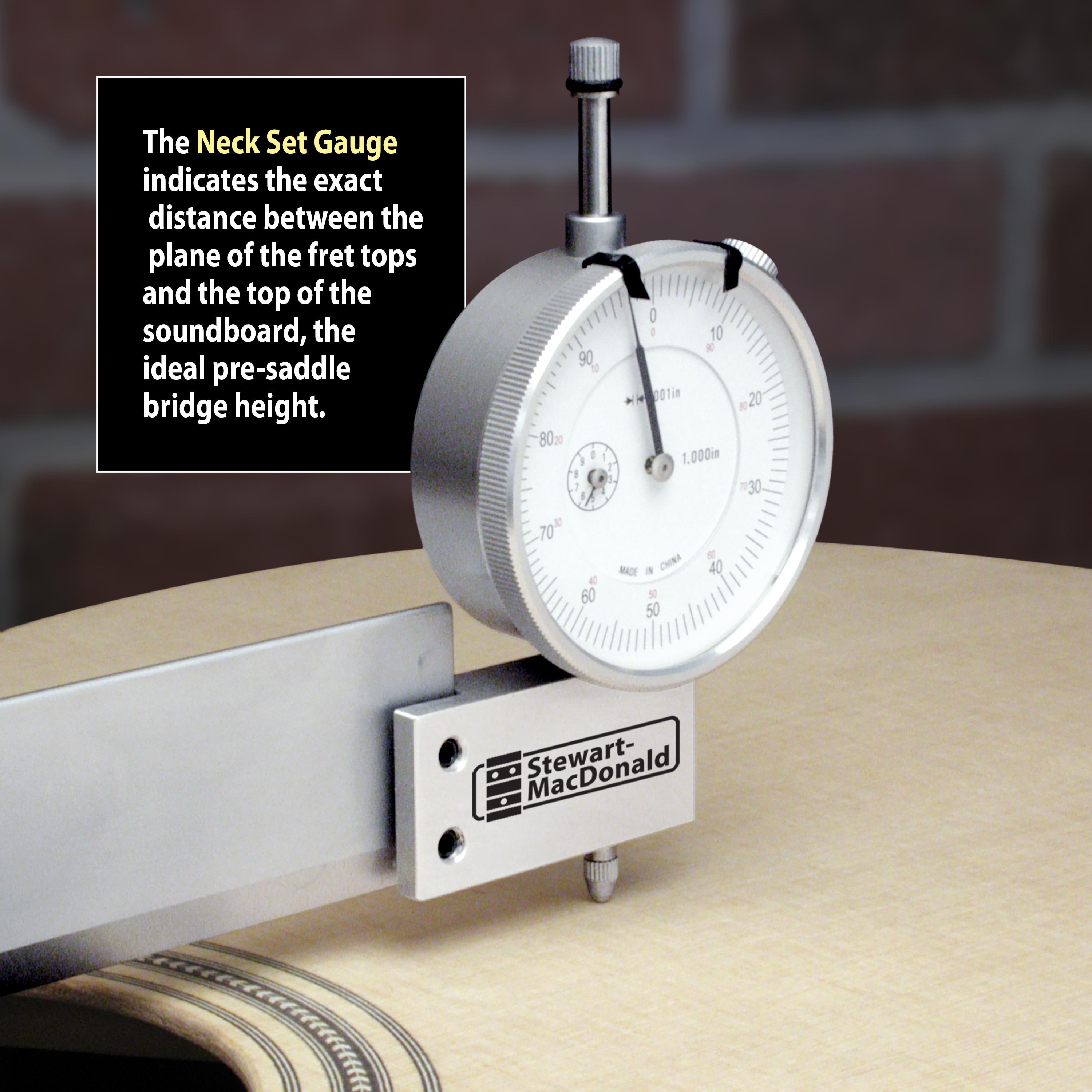 Luthier Bryan Galloup schlug dieses einzigartige Gerät vor, das eine komplizierte Halseinstellung präzise macht. Unsere Hals-Set-Messlehre, zur Befestigung an unserer #3799 24" Präzisions-Strahlkante, hilft bei der Bestimmung der genauen Holzmenge, die aus dem Halsabsatz entfernt werden soll, um den richtigen Halswinkel und die beste Spielbarkeit zu gewährleisten. Genau bis 0,001", kann es auch die beste Vorsattelhöhe für eine neue Brücke anzeigen. Anweisungen und eine mathematische Formel für das Trimmen der Nackenabsätze sind enthalten.Das Einstellen eines akustischen Gitarrenhalses in den richtigen Winkel war noch nie so einfach. Das Trimmen der richtigen Holzmenge aus dem Halsabsatz war meist ein Versuch. Die Neck Set Gauge ist eine großartige Lösung vom Bau- und Reparaturtechniker Bryan Galloup. Bryan führt für seine Kunden eine Menge anspruchsvoller Nacken-Resets durch, und diese Erfahrung hat zu einer neuen Verwendung einer Messuhr geführt, um die Aufgabe präzise zu gestalten.