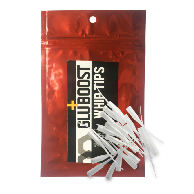 Für schwierige Reparaturen am Finish, die extreme Präzision erfordern, verwenden Sie GluBoost Peitschenspitzen. Die Spitzen bieten eine präzise Kontrolle und passen perfekt zu den GluBoost Fill n' Finish Flaschenoberteilen. Die ultrafeine 1-11/16" (42,86 mm) Spitze ist perfekt für Drop-Fills und mehr.