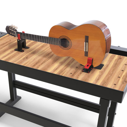 Möchten Sie Ihre Werkbank mitnehmen? Mit dem Gig Portable Guitar Workshop haben Sie eine solide und sichere Werkbank, wenn Sie eine Hülle, einen Tisch oder sogar ein Stück Sperrholz haben.
