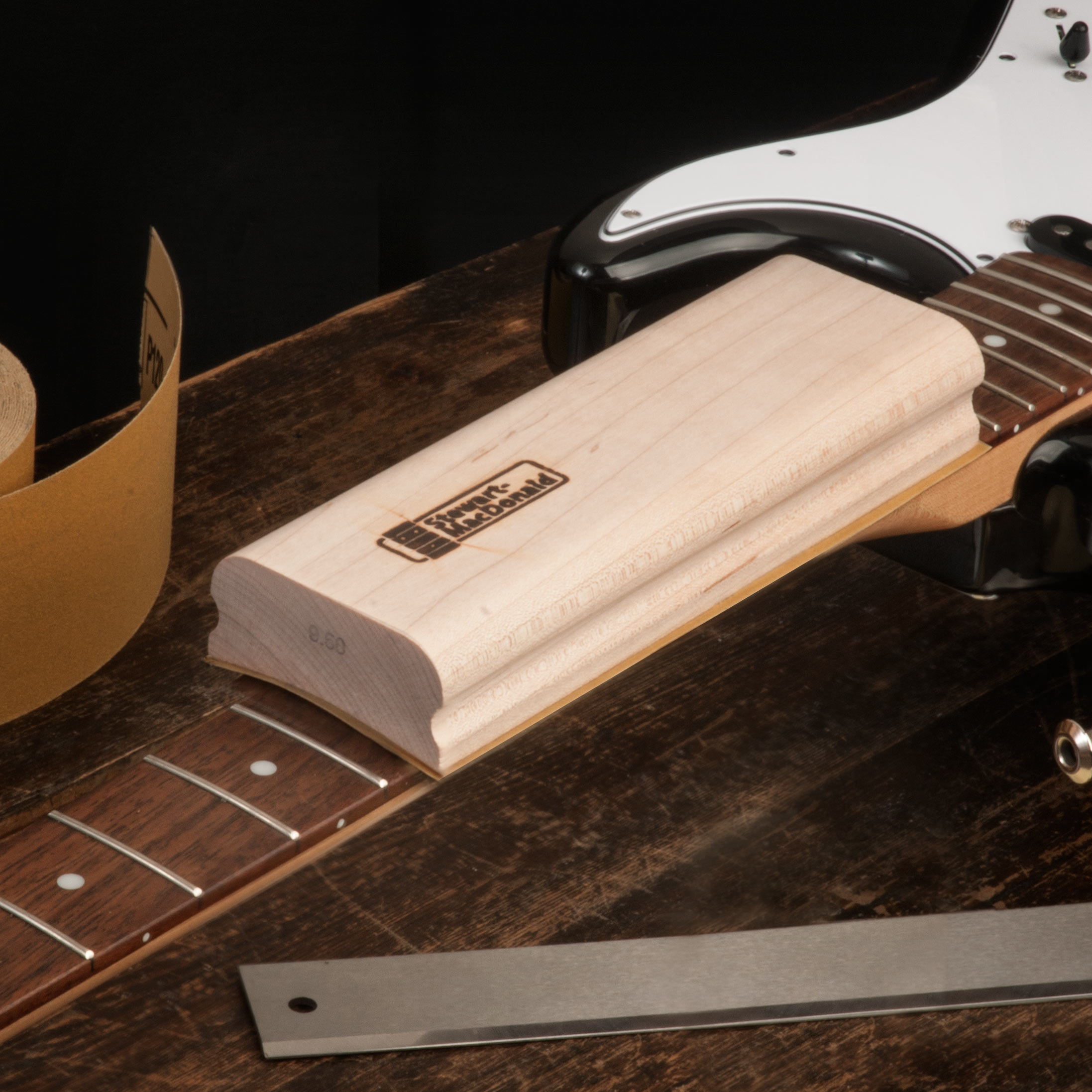 Wir stellen diese Hartholzklötze für die Verwendung mit Stikit-Schleifmitteln her, damit du ein Griffbrett schnell, präzise und ohne Rätselraten bearbeiten kannst.