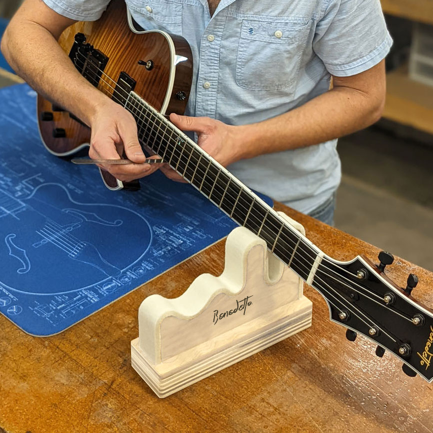 Eine Gitarrenhalsstütze ist ein Must-Have! Ganz gleich, ob du die Strings wechselst oder die Tuner wechselst, du musst deine Gitarre stabil und sicher halten. Benedetto hat mit seiner jahrzehntelangen Erfahrung im Gitarrenbau und -design eine Nackenstütze entwickelt, die nicht nur funktional und optisch ansprechend ist, sondern auch hart für ein raues Leben in Ihrem Geschäft gebaut wurde.