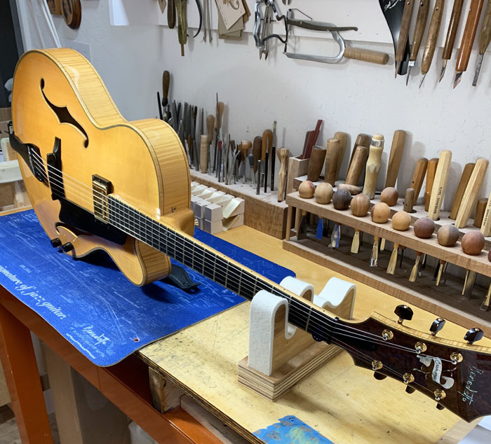 Diese elegante Nackenstütze wurde von Bob Benedetto, einem Archtop-Handwerker, entworfen und exklusiv von StewMac hergestellt. Sie verfügt über einige versteckte Funktionen, mit denen Sie Ihr Handwerk aufwerten können. Von einfachen Einstellungen bis hin zu komplizierten Anpassungen der Spielposition – dieser wunderschöne Helfer verdient sich sofort seinen Platz auf Ihrer Bank.