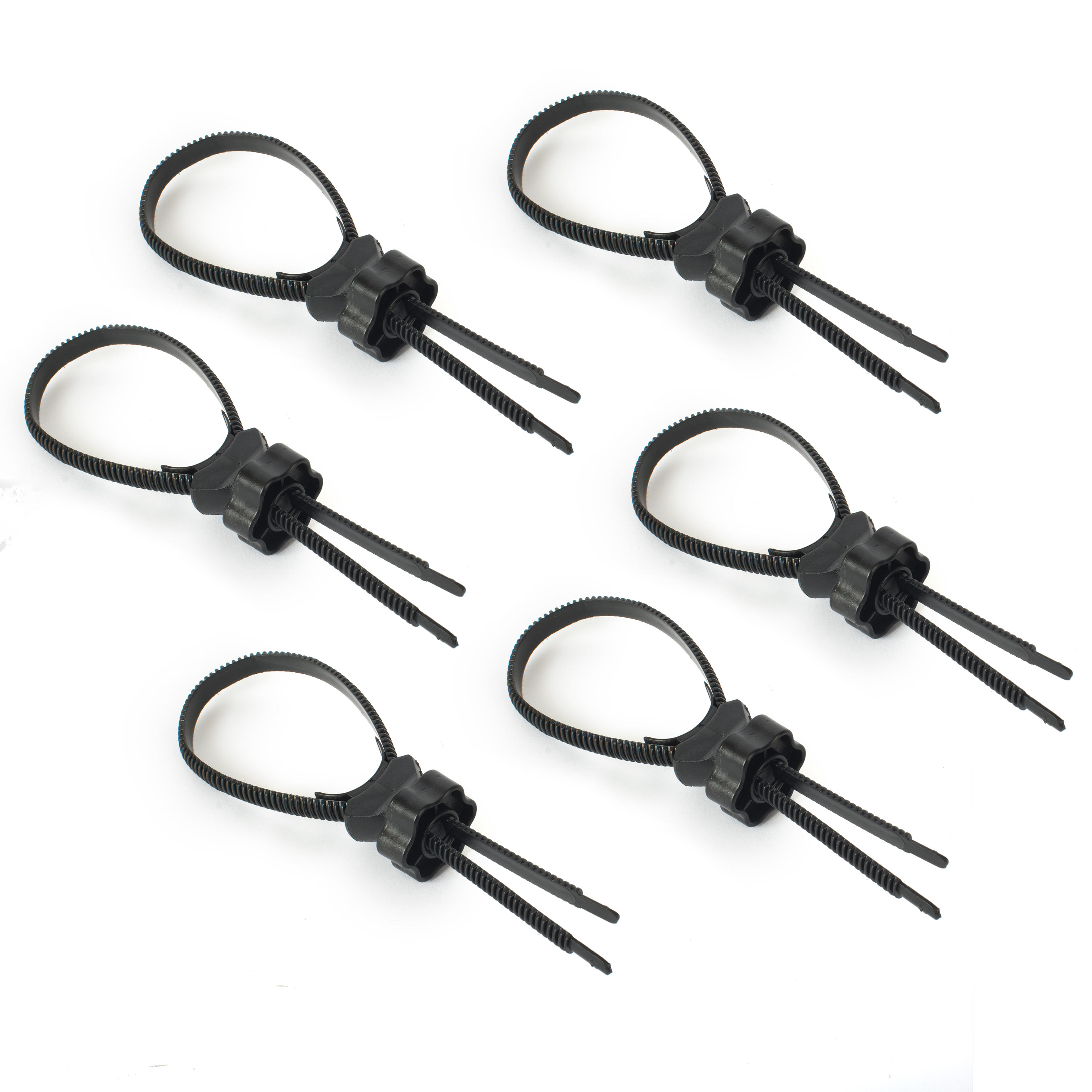 Fingerboard-Bandklammern sind eine schnelle Möglichkeit, ein Fingerboard ohne umständliche Kessel zu kleben, und eine praktische Lösung für radiusförmige Fingerboards. Die gezahnte Außenfläche des flexiblen kleberbeständigen Bandes greift in eine Kunststoff-Daumenmutter mit Gewinde ein, die den Klemmdruck einstellt. Die flexible Halterung passt sich dem Hals des Instruments an, um das Finish zu schützen.Wir empfehlen, eine Bandklemme alle 3" entlang der Fingerplatte zu positionieren.