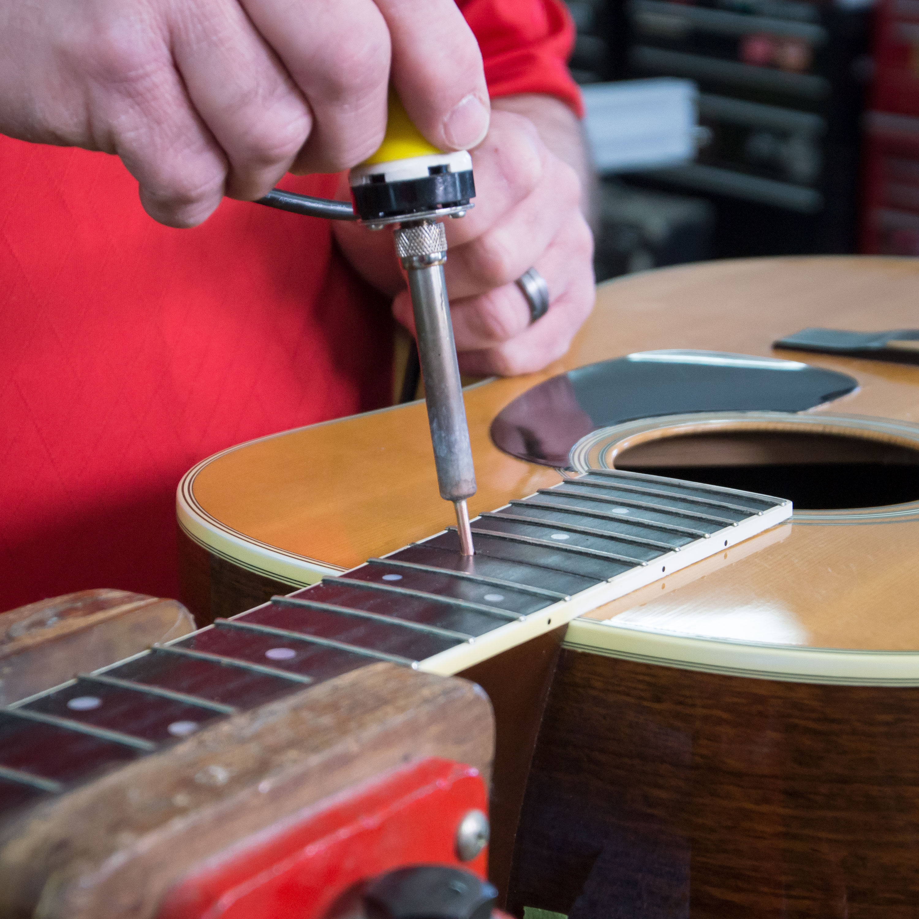 Der revolutionäre HeatStick macht Klebstoff weich, ohne empfindliche Oberflächen zu rösten oder den Halsblock oder die Zahnspange wie die Dampfdose zu lockern. Es ist einfach zu steuern und kann für akustische und elektrische Gitarren und Mandoline verwendet werden. Der HeatStick besteht aus 6" massivem Kupfer und enthält zwei Bits zum Bohren der Pilot- und Zugangslöcher durch die Frontplatte.
