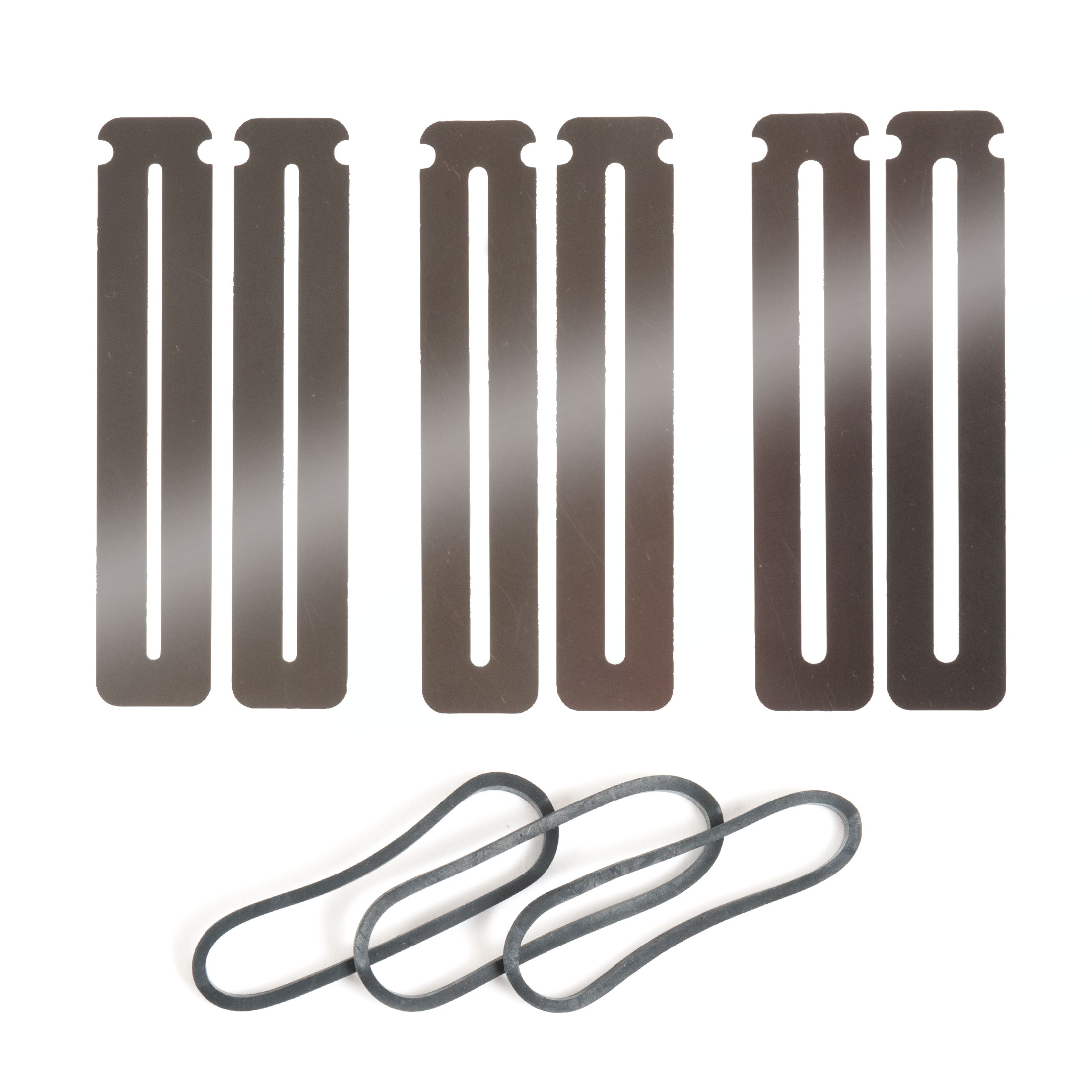 Jede dieser praktischen Schutzvorrichtungen passt über eine Pfanne für sicheres Feilen und Polieren, um Ihr Brett sauber und unverkratzt zu halten. Sie sind aus flexiblem 0,01"-Edelstahl gefertigt, für lange Haltbarkeit.
