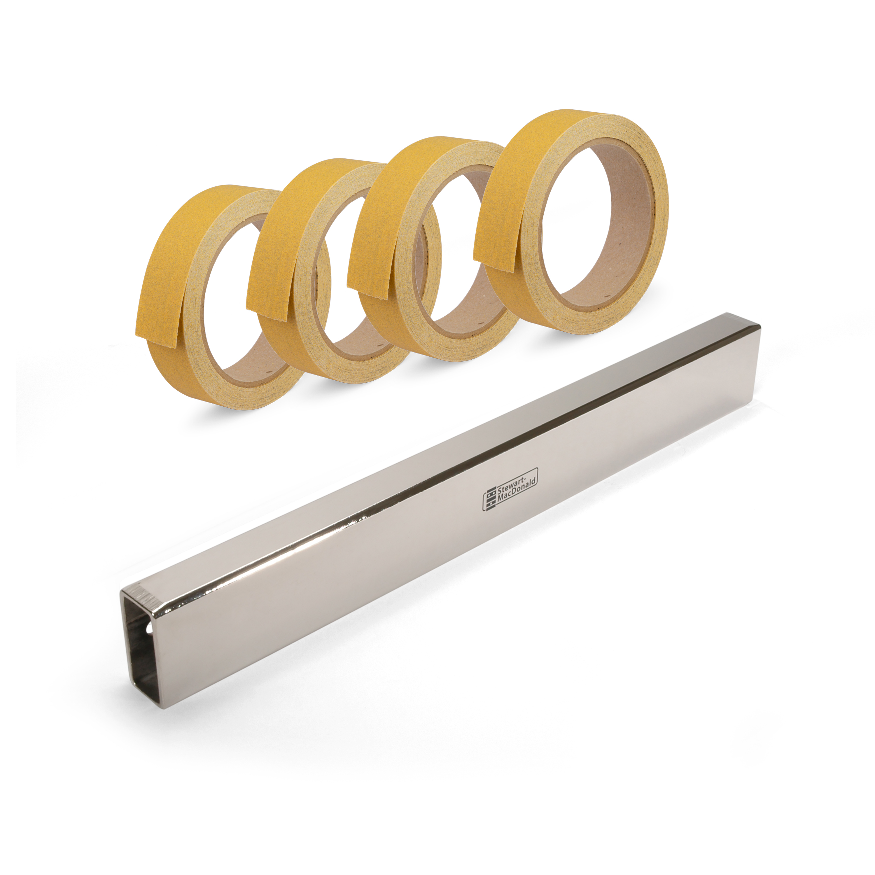 Jedes Set enthält einen Nivellierer und vier 15-Meter-Rollen Stikit, eines von jedem Korn: 320, 400, 600 und 800 Körnungen. Weitere Körnungen sind auch separat erhältlich.