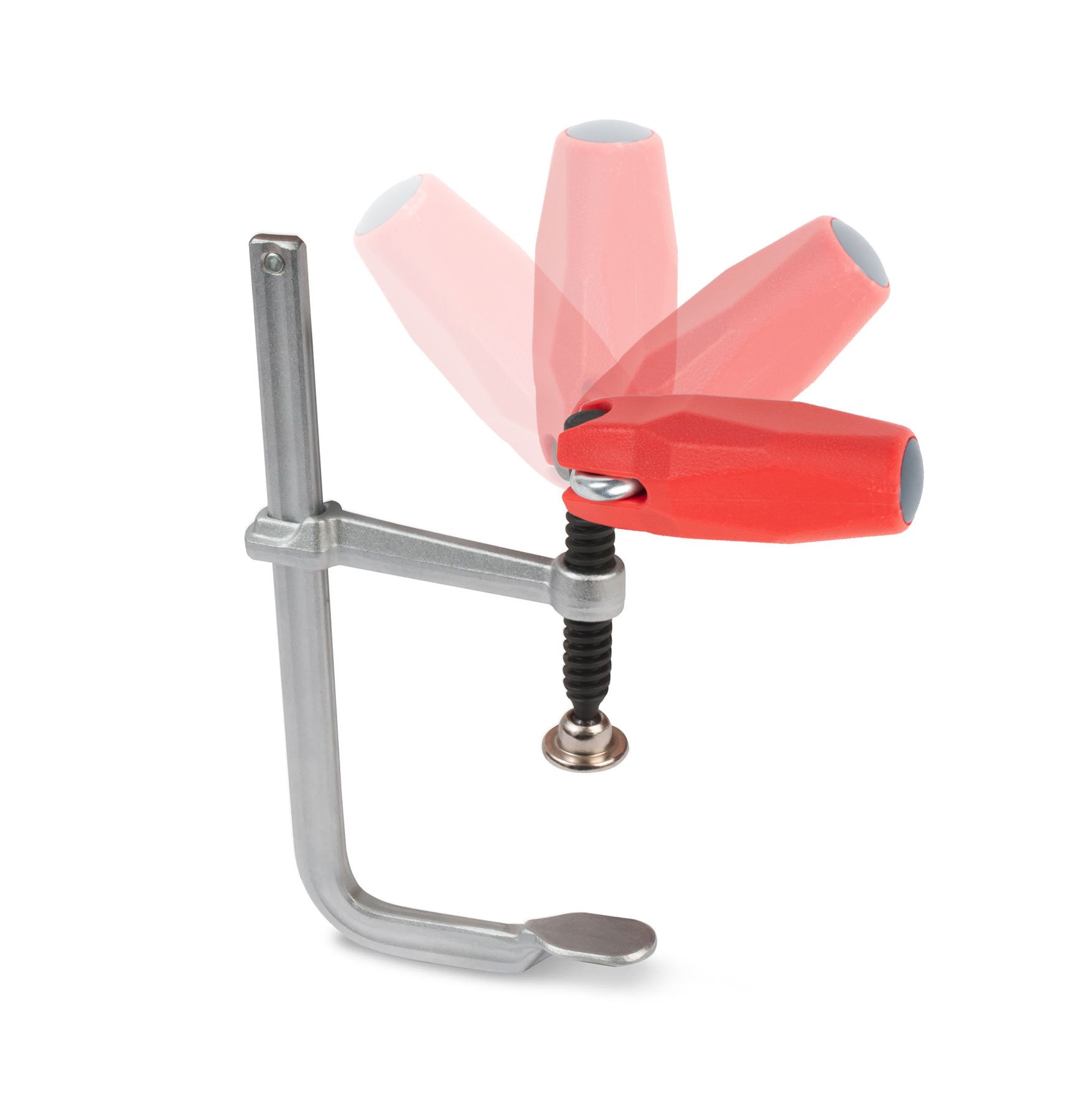 Erhalten Sie mit einem rechtwinkligen Griff eine bessere Kontrolle über Ihren Klemmdruck. Es ist einfacher, immer so leichte Anpassungen vorzunehmen oder es wirklich herunterzudrehen!
