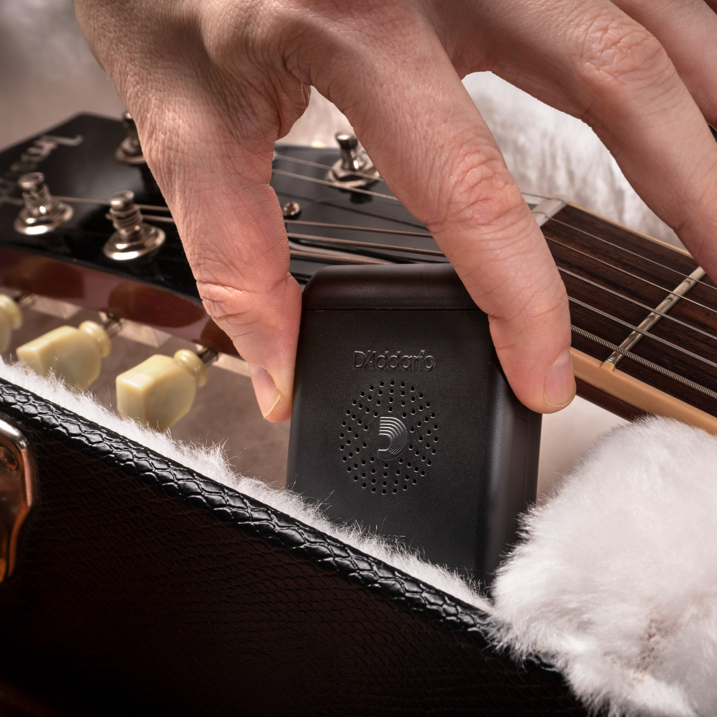 Der Gitarrengehäusebefeuchter kann auch in Verbindung mit dem traditionellen D'Addario Planet Waves Guitar Befeuchter Pro im Schallloch für akustische Gitarren verwendet werden, wenn Ihre Luftfeuchtigkeit konstant 20 % oder niedriger ist. Es ist perfekt, um auch elektrische Gitarren mit Feuchtigkeit zu versorgen – fügen Sie einfach eine am Kopfteil zu Ihrem Koffer hinzu, um Frettchensprossen und andere Schäden zu vermeiden.