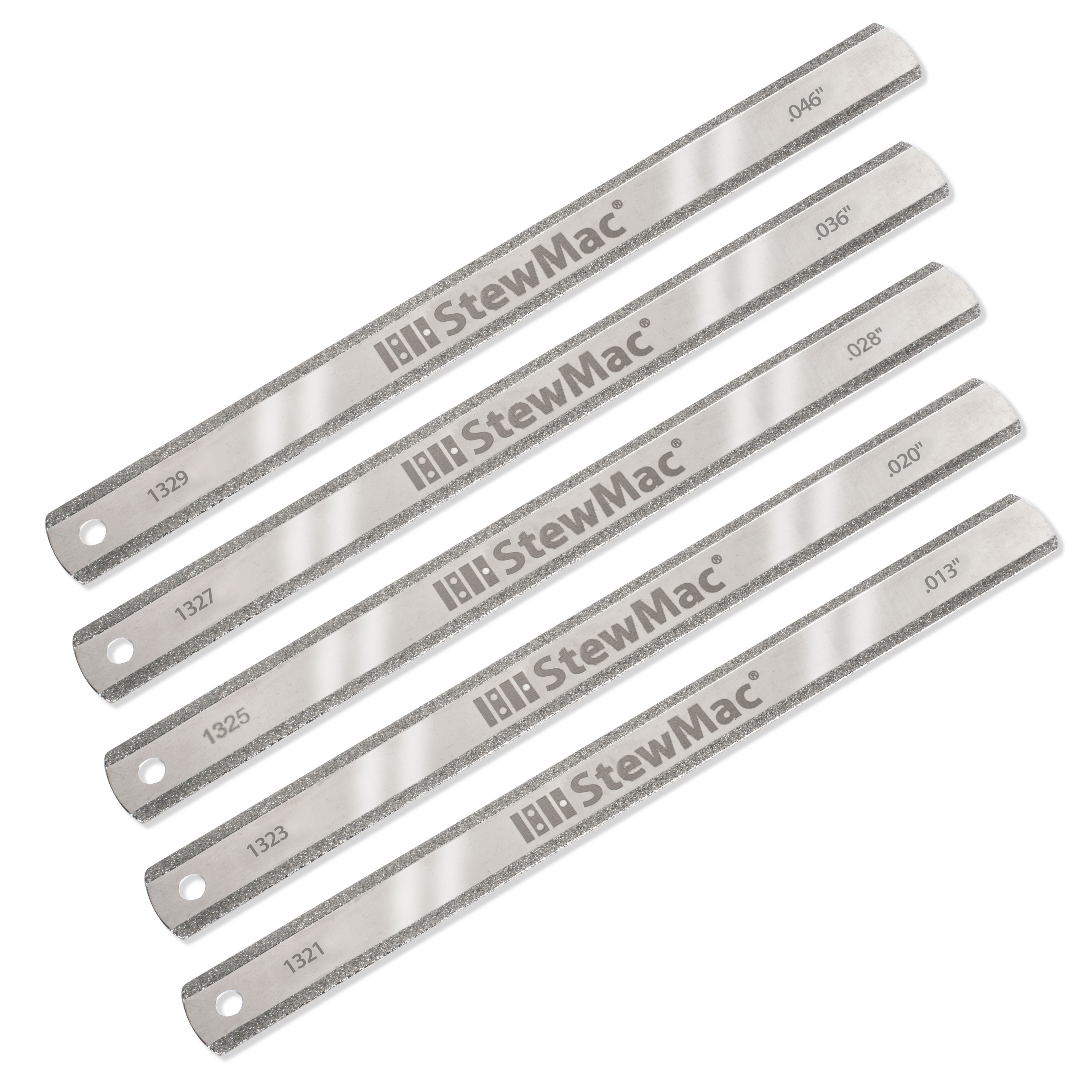 Um Dateien so fein und präzise zu gestalten, mussten wir den Körnungsgrad variieren. Die 0,01" und 0,013" sind 400-körnig, die 0,016" und 0,020" sind 300-körnig und die 0,024"-0,056" sind 150-körnig. Dank der feineren Körnung können selbst die dünnsten Dateien gerade und glatt geschnitten werden, ohne dass es zu einem „Wandering“ wie bei dünneren Dateien kommt.
