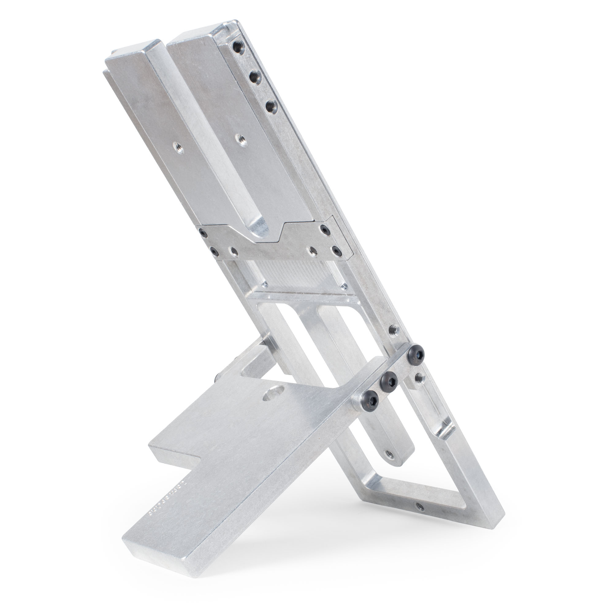 Die Spannvorrichtung ist aus massivem Aluminium gefertigt, um Steifigkeit und Lebensdauer zu gewährleisten. Eine schwenkbare, abschließbare Oberfräsen passt sich Ihrem eingestellten Winkel an und sorgt dafür, dass beide Zargen der Verbindung wahr bleiben. Die Zentrierung wird durch den Strangstangenschlitz mithilfe von Ausrichtungsstiften gehandhabt, wodurch visuelle Ausrichtungsfehler eliminiert werden und alles in der richtigen Mitte indiziert bleibt.