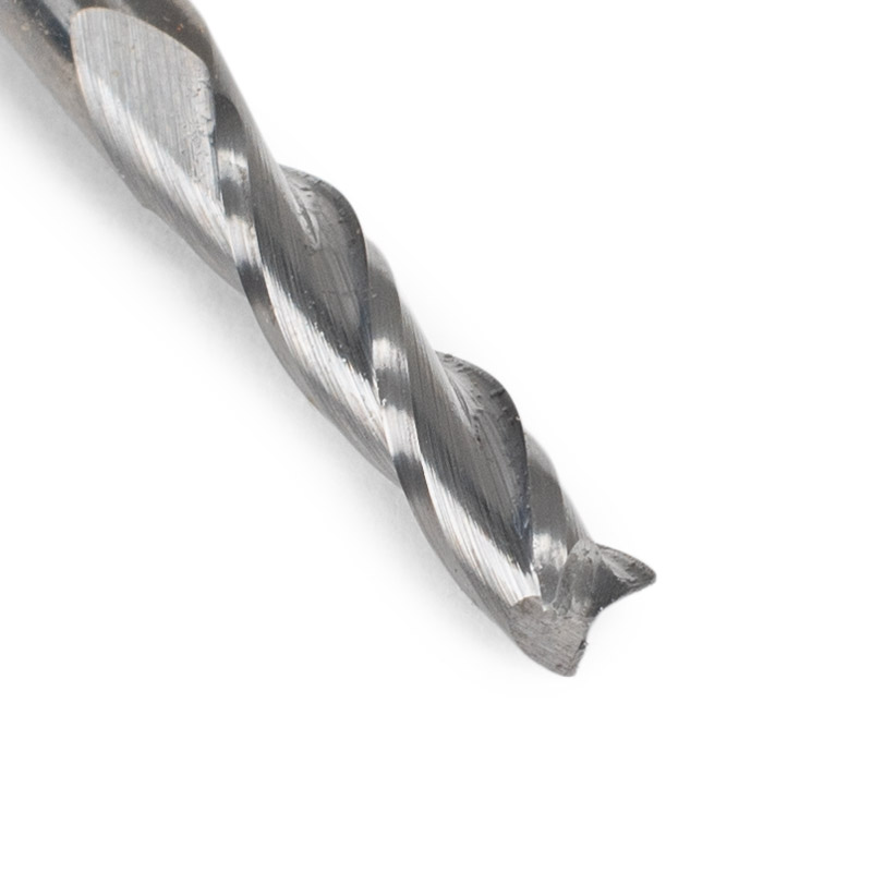 Das richtige Bit für Führungskanäle für Verstärkungsstäbe aus Titan. Etwas unterdimensioniert, um eine korrekte Passform zu gewährleisten. Hartmetall "upcut", um beim Schneiden Späne aus dem Schlitz zu ziehen.