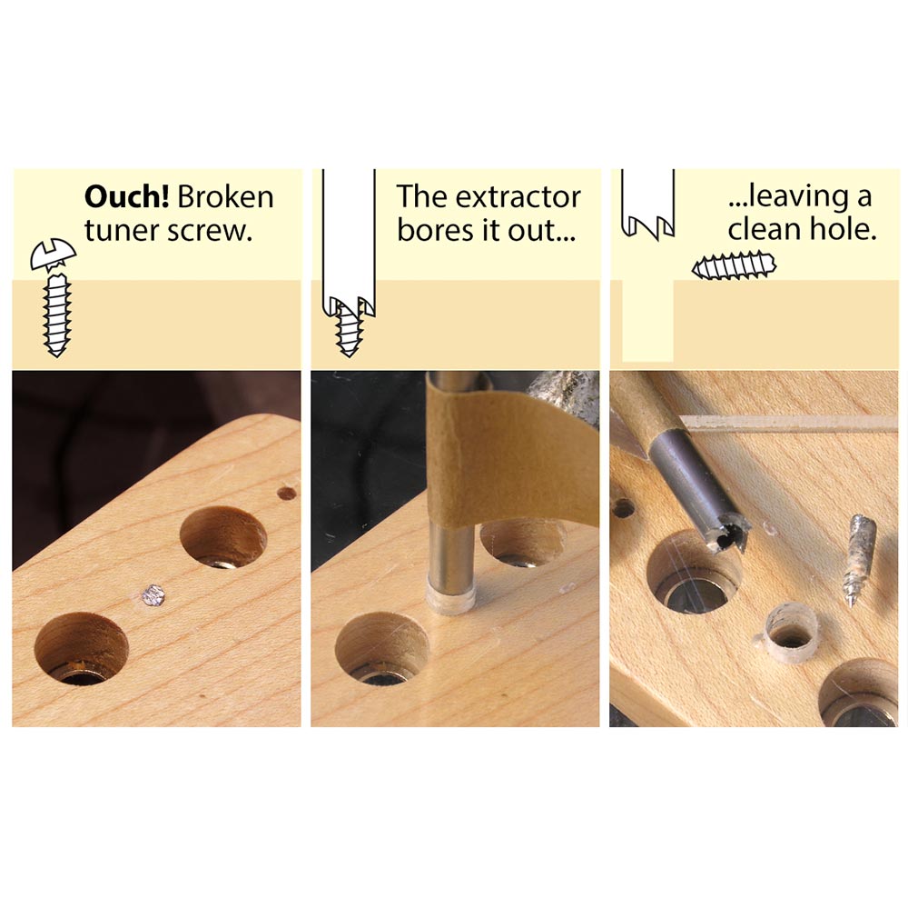 Ein Extraktor und Plug-Cutter, der klein genug für Gitarrenschrauben ist! Ein exklusives StewMac-Set: In dieser kleinen Größe findest du nirgendwo sonst ein ähnliches Set.