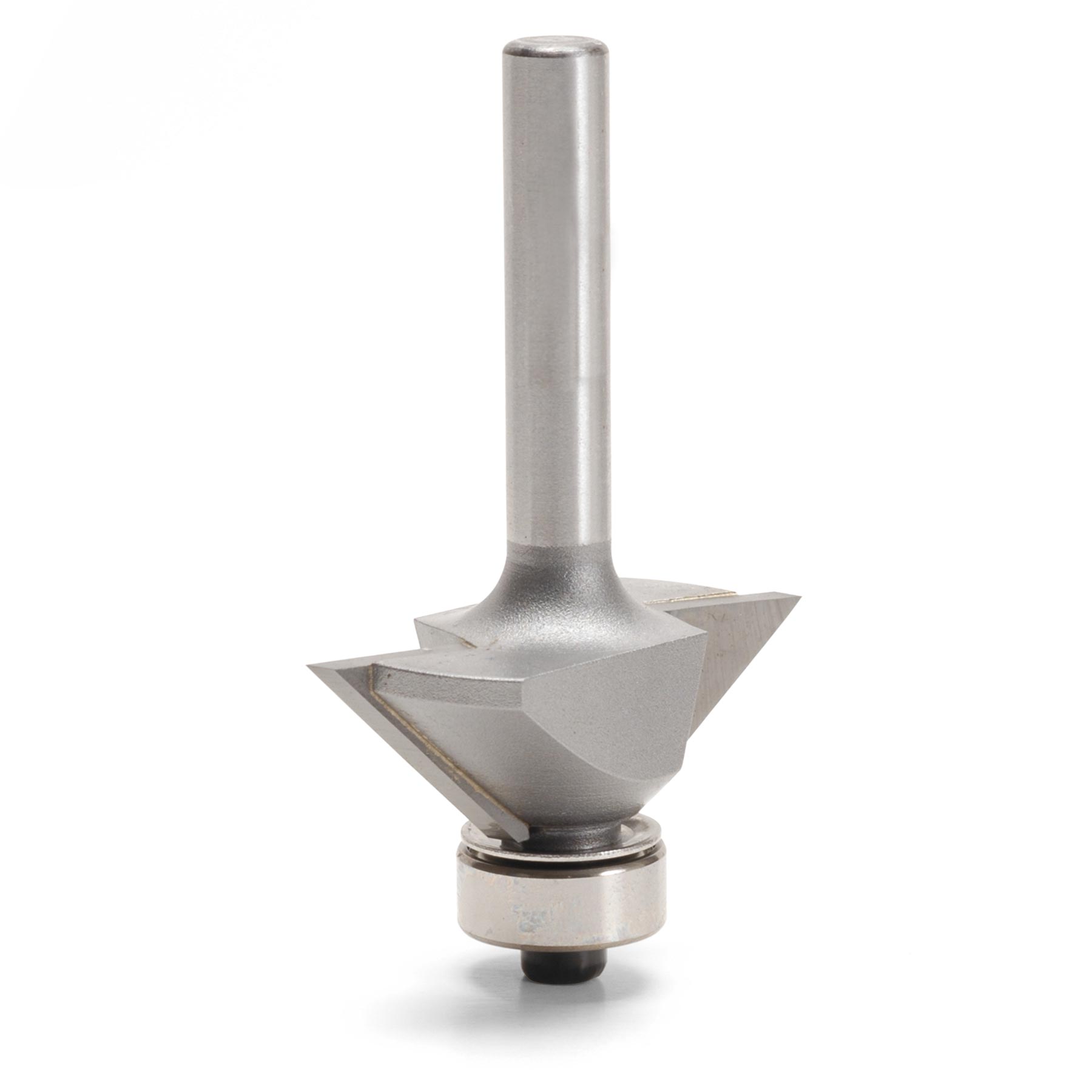 Der Hartmetallschneider verfügt über einen Schaft mit 1/4" Durchmesser und eine Kugellagerführung mit 1/2" Durchmesser.