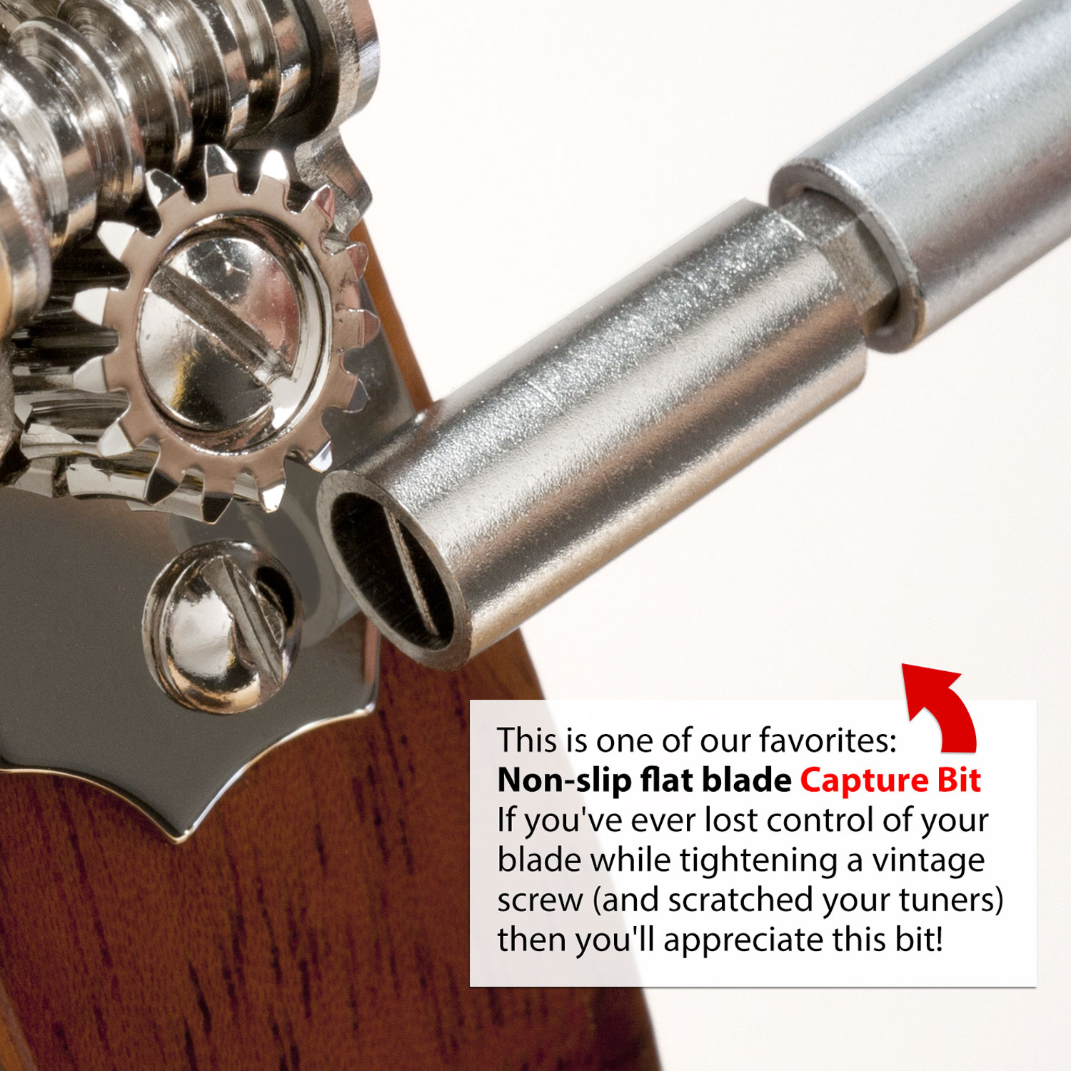Capture bit: 5.0mm non-slip flat-blade bit helps protect small screws and finished surfaces. A StewMac exclusive!