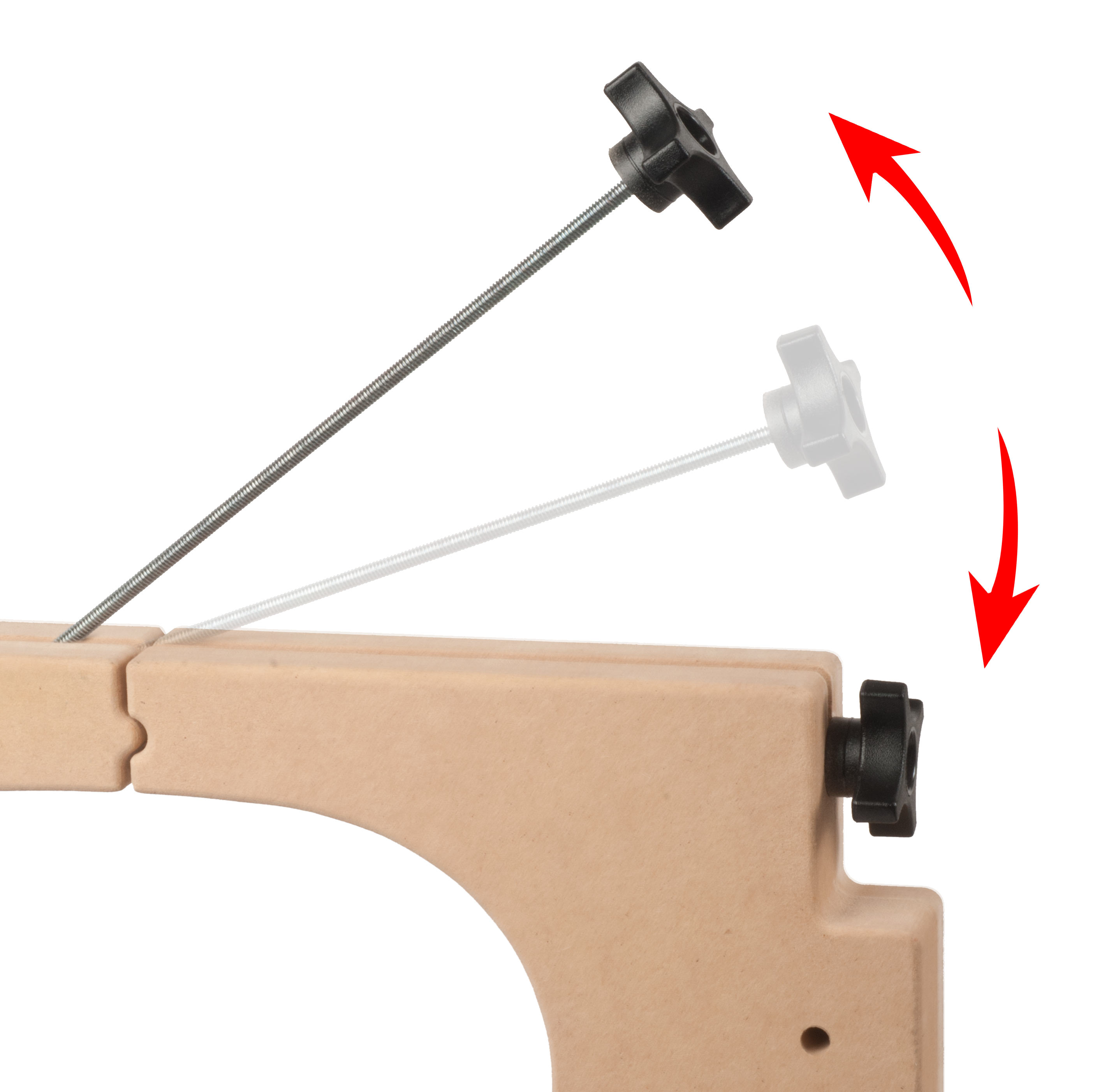 Im Inneren der Form richten sich die mit der Rändelschraube verstellbaren Gewindespreizerstangen mit konturierten Hartholz-Culs aus Gitarrenbund, Nackenblock und Heckblock aus. Die Taillenblöcke sind für den Seitenstreifenabstand eingekerbt.