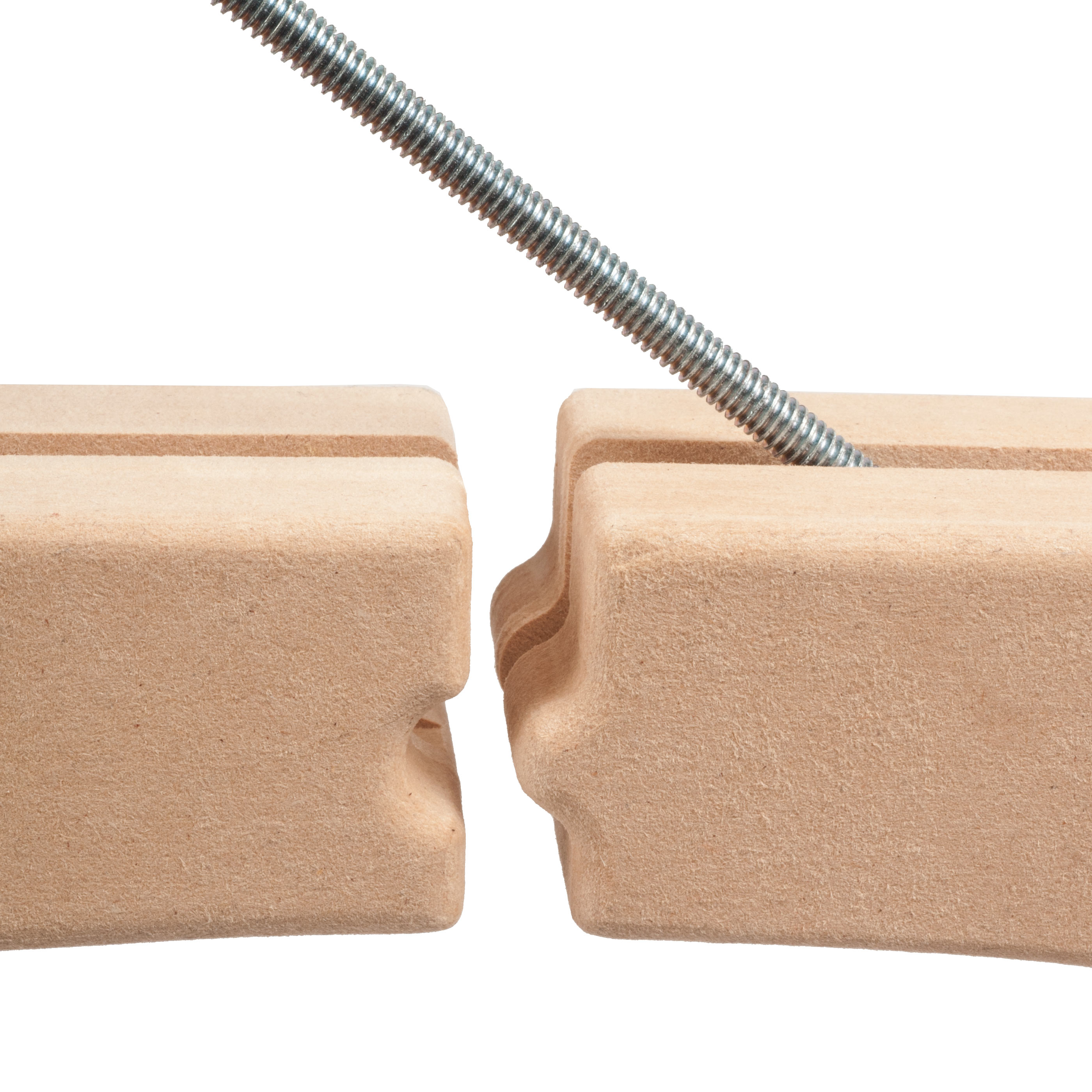Unser Shop-Vorarbeiter Todd Sams, der auch großartige Bluegrasgitarren baut, hat uns mit diesen innovativen Schimmelpilzen begeistert. Sie sind aus einem starken, nicht verzerrenden, 2 Zoll dicken MDF gefertigt, und ihre schnelle, einfache Einrichtung macht sie zu einem Vergnügen. Schwenkbare Rändelschrauben mit Gewinde stecken zum Schließen in die gerillten Enden jeder Form – es gibt keine externe Hardware, die den Montageklemmen im Weg steht.
