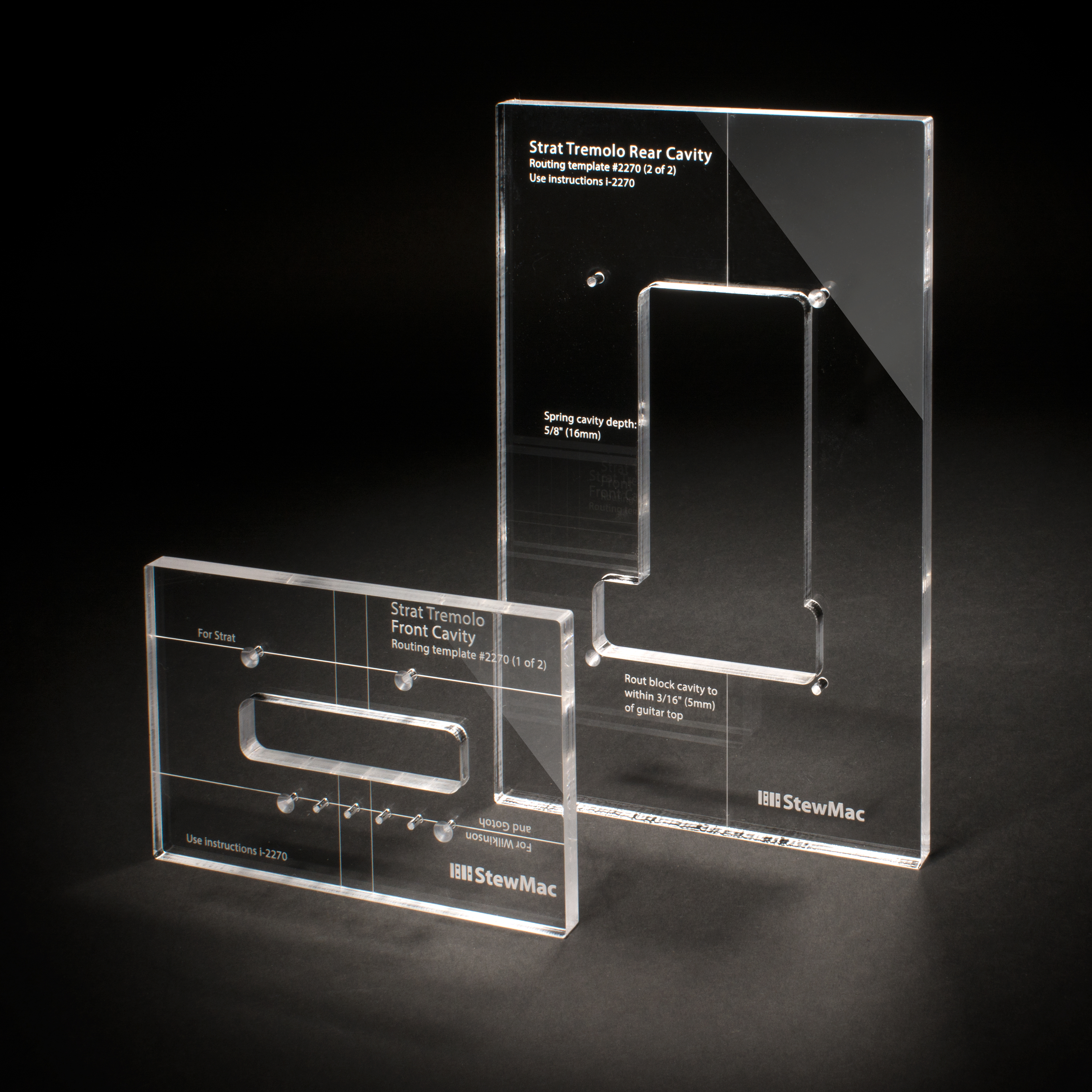 Die verbesserten Vorlagen von StewMac sind jetzt dicker mit glatten lasergeschnittenen Kanten. Die richtigen Tiefenmessungen sind direkt auf der Vorlage eingeätzt, sodass Sie nicht über die Abmessungen der Kavität puzzlen müssen. Wir haben das für Sie getan.