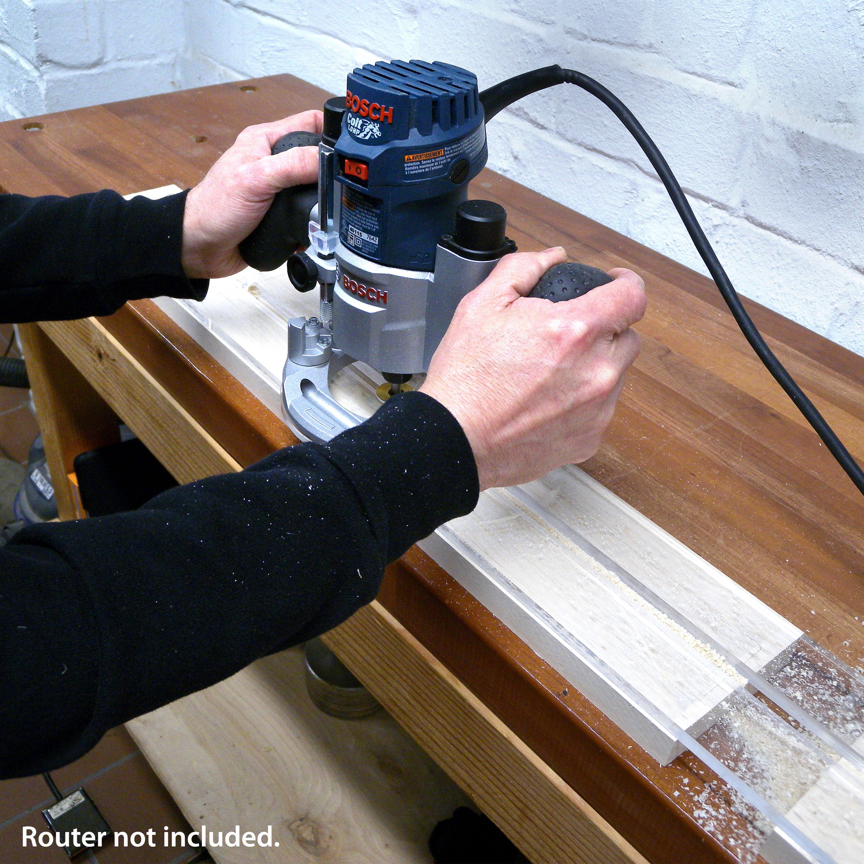 Die Vorlage erleichtert die Einrichtung, die Arbeit und sorgt für konsistente, präzise Ergebnisse. Wir haben die Schablone und den Colt Acryl-Router-Basisaufsatz speziell entwickelt, um nahtlos mit der Bosch Tauchbasis für Colt-Router zu arbeiten. Zusammen machen sie es einfach, deinen Slot in kürzester Zeit einzurichten, zu routen und abzuschließen. Sie können sogar die gleiche Schablone verwenden, um Kohlefaser - oder Titan-Verstärkungsstäbe zu routen.