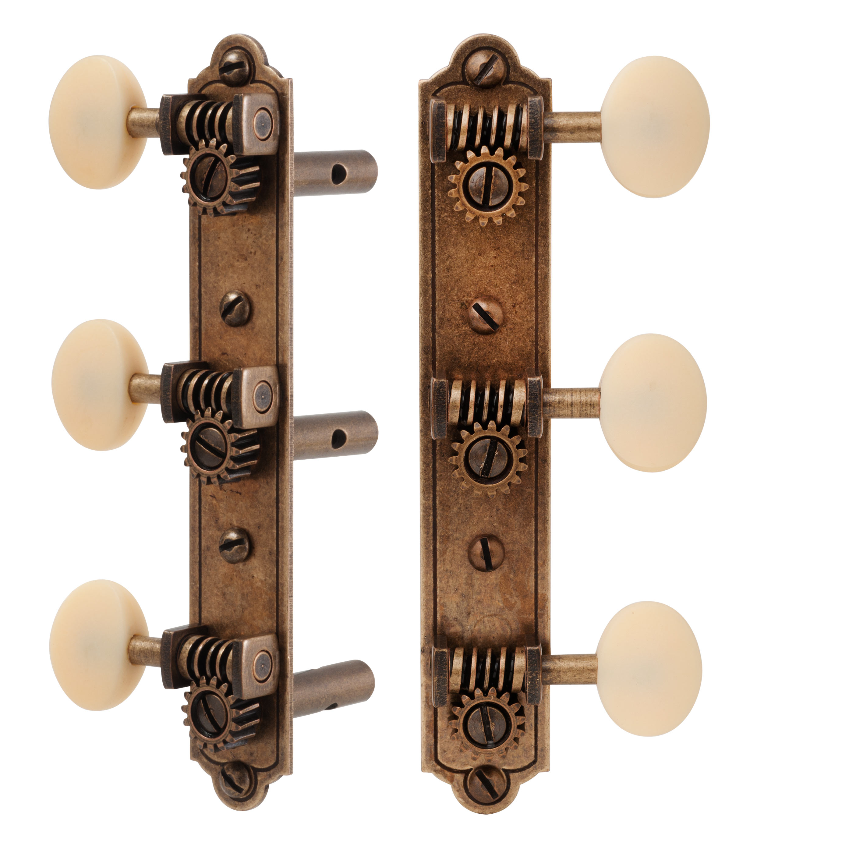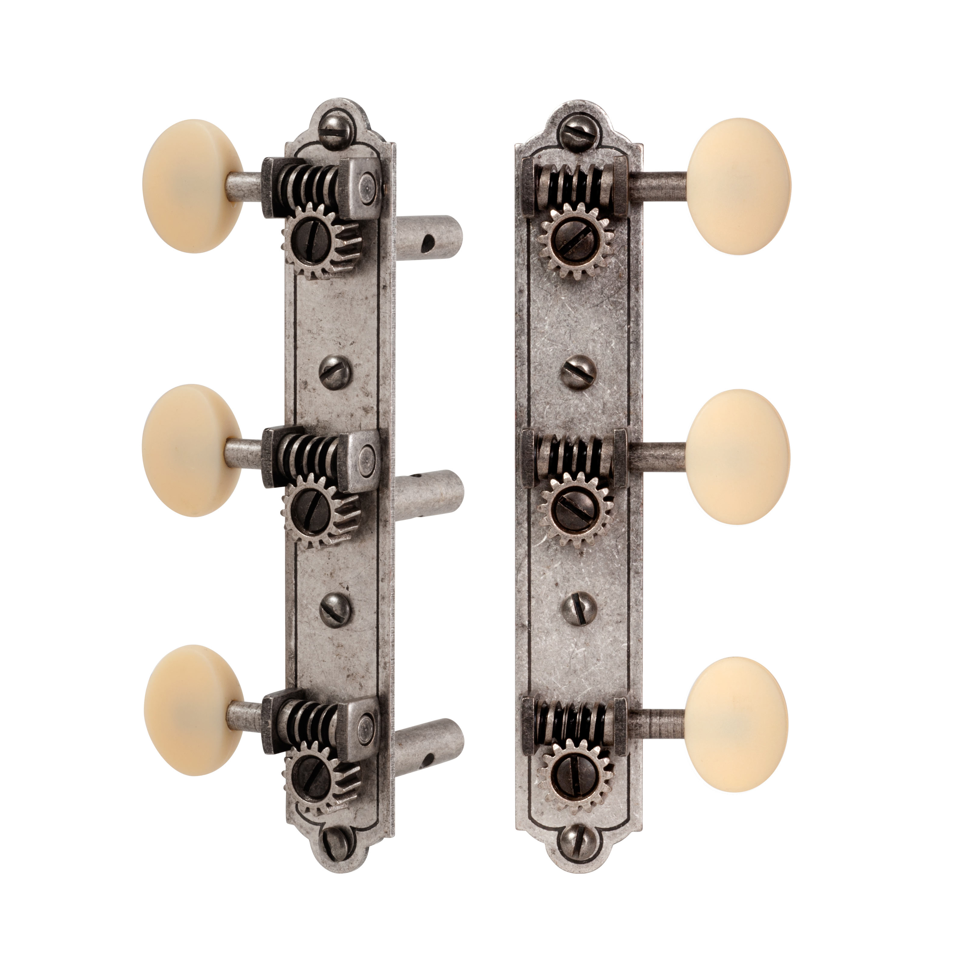 Tuner aus der Vorkriegszeit wiedergeboren! Unsere Nachbildungen von 3-on-plate-Tunern mit einfachen inzidierten Basisplatten, wie sie von Waverly von 1920er bis 40s hergestellt wurden.