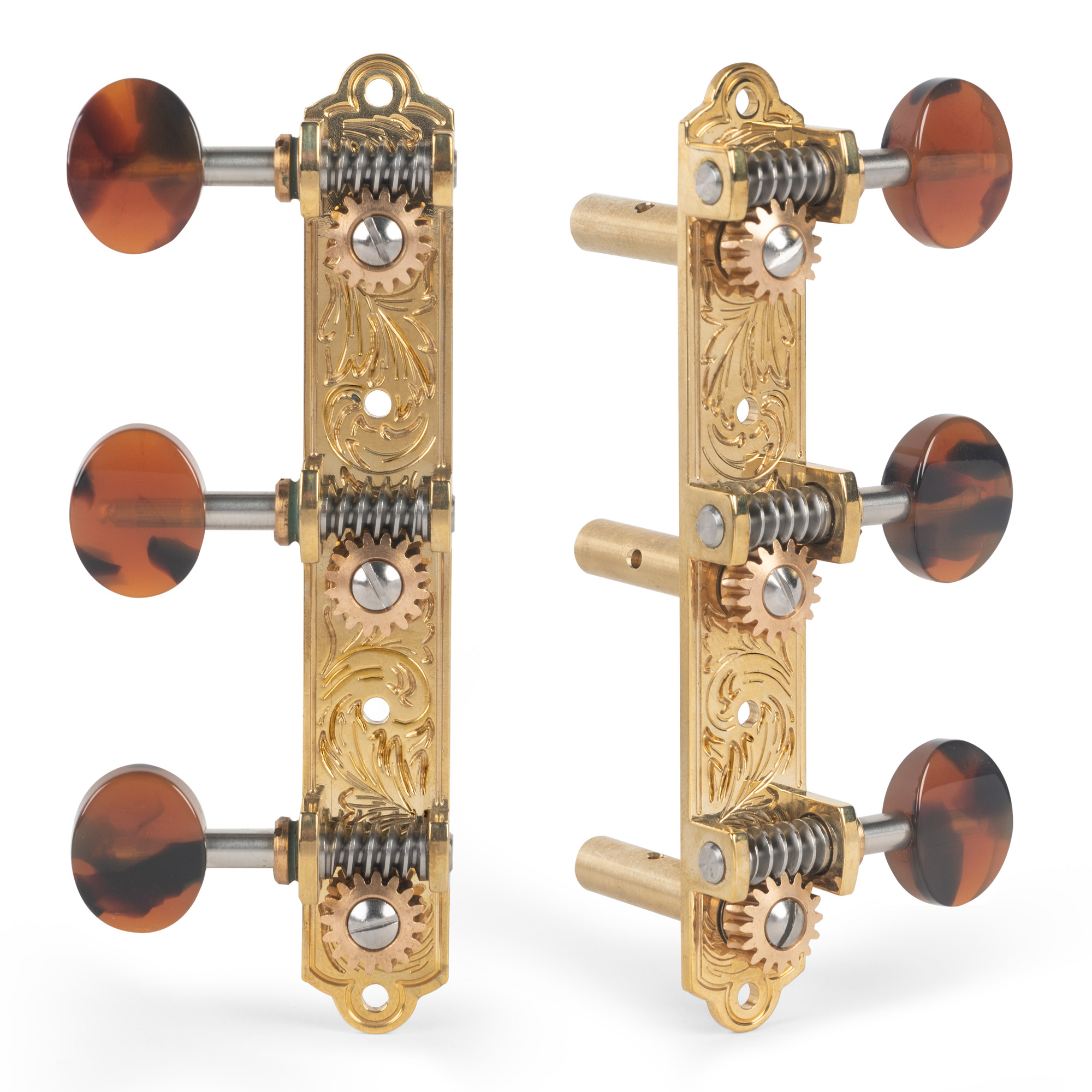 Waverly 3-On-Plate Gitarren-Tuner mit dunklen Tortoise für geschlitzte Zapfenköpfe