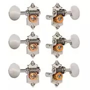 Die stabilen Grundplatten aus Stahl haben die authentische Größe aus den 1930er. Die String-Schäfte sind aus Messing im Vintage-Stil mit geraden Einlochöffnungen und einem Durchmesser von 1/4" für 3-links/3-rechts geschlitzte Steckköpfe. Schlitzkopf-Befestigungsschrauben runden den authentischen Look ab.
