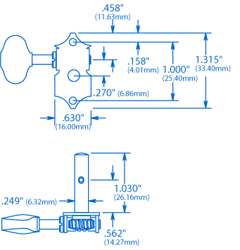 Waverly Gitarren-Tuner mit weißen Drehknöpfen für geschlitzte Zapfenköpfe